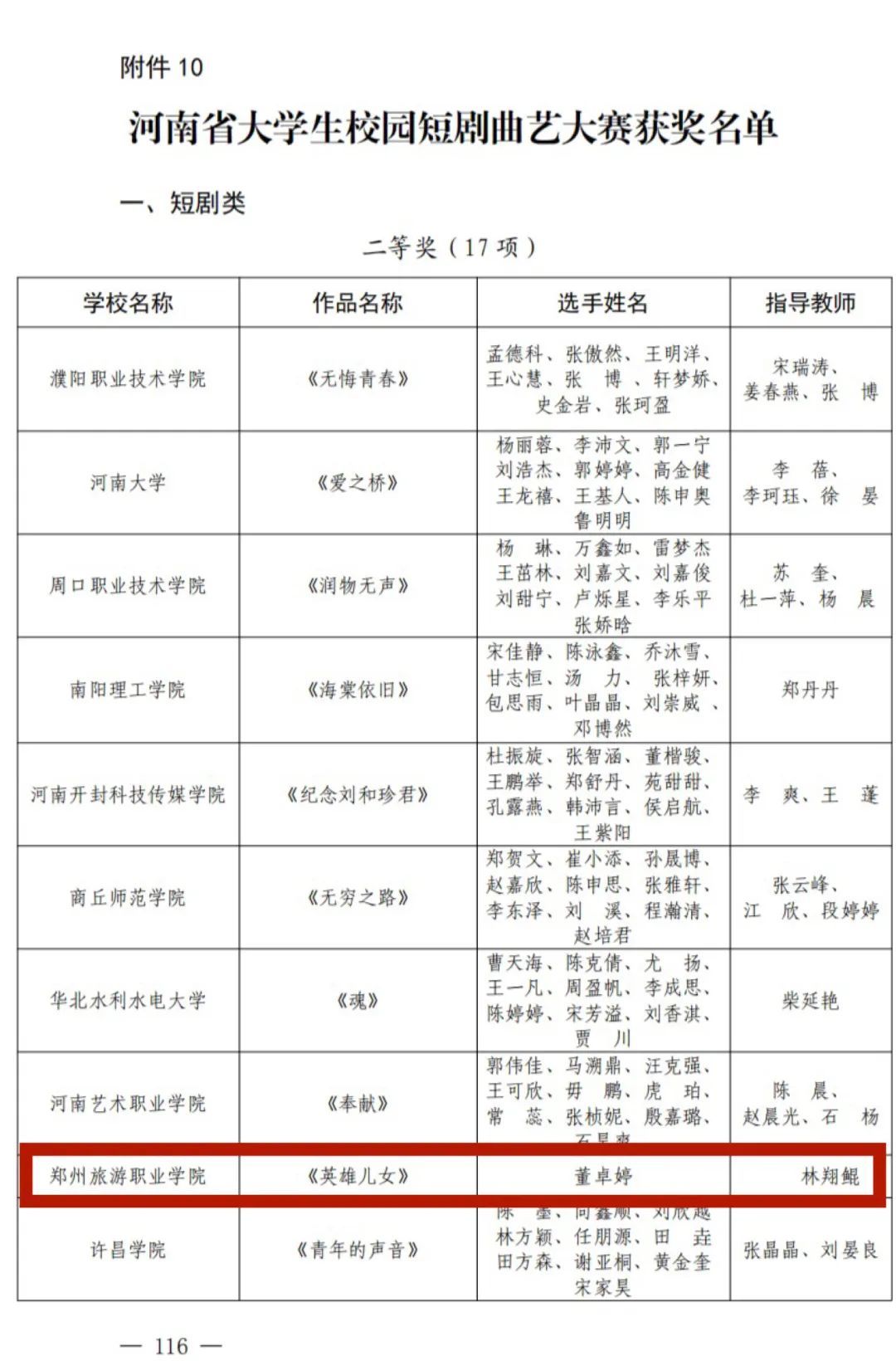 河南省大学生校园短剧曲艺大赛获奖名单