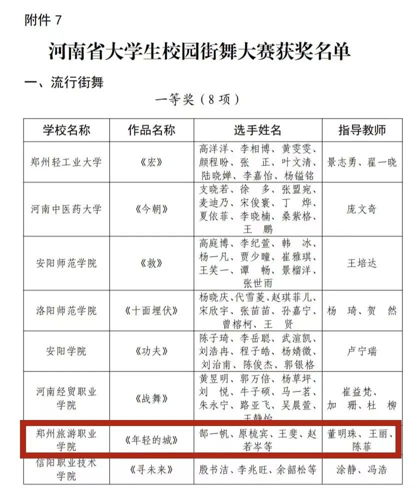 河南省大学生校园街舞大赛获奖名单