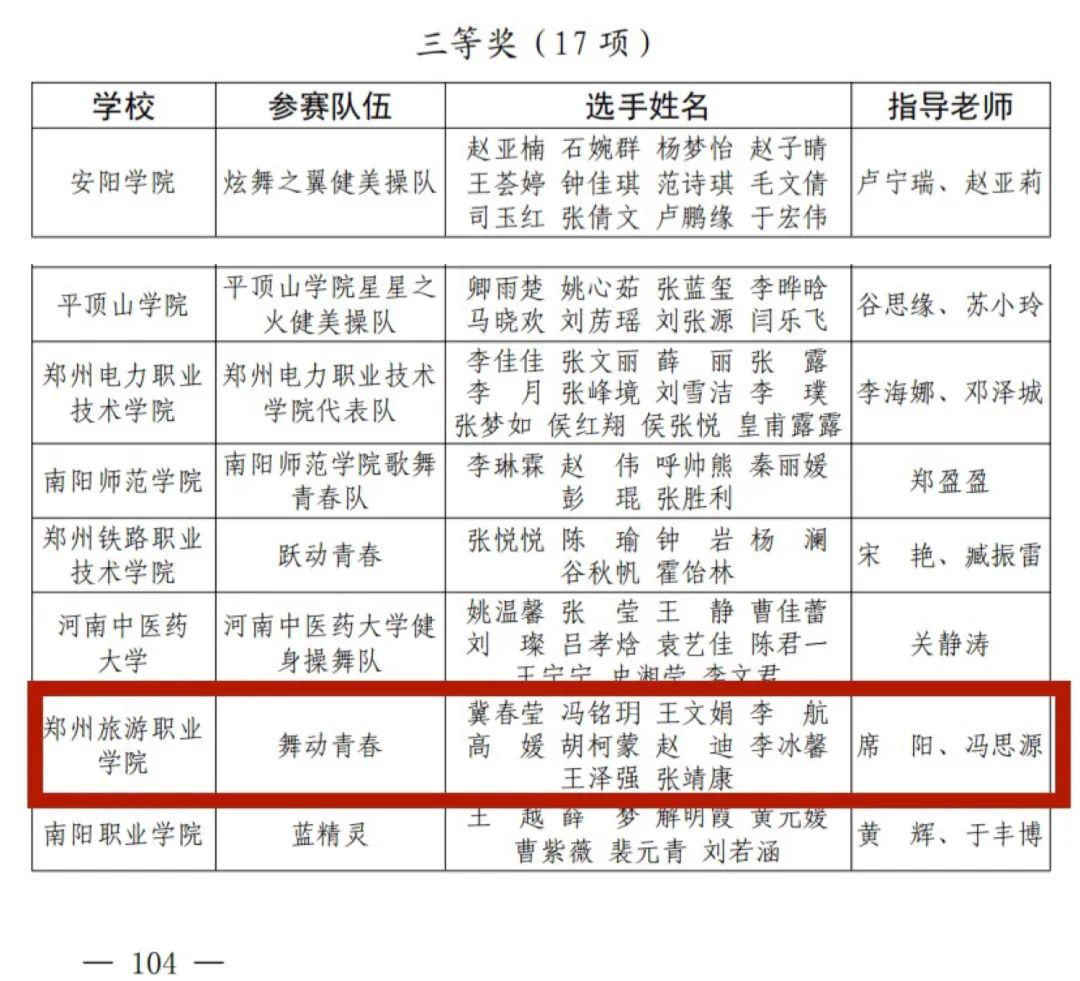 河南省大学生校园健身健美操大赛获奖名单
