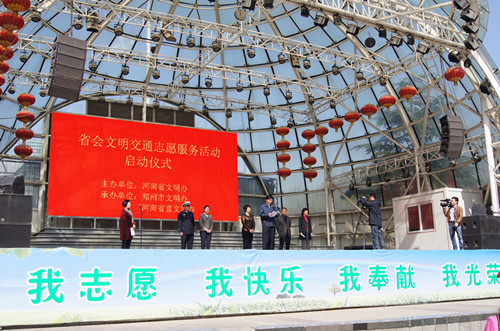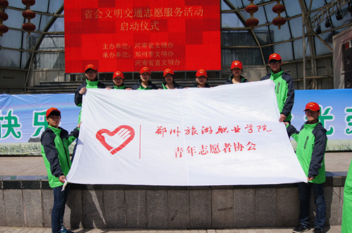 2013年4月11日上午九时,我院十名青年志愿者在团委杨志渊老师的带领下,代表管城区到郑州市绿城广场,参加由河南省文明办主办、郑州市文明办和省直文明办联合承办的“省会文明交通志愿服务活动”启动仪式。