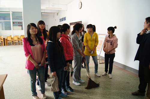 2013年4月11日15时50分,pp电子游戏平台网站院团委学生干部和杨志渊老师组织第九期业余团校的学员在图书馆进行了打扫活动。