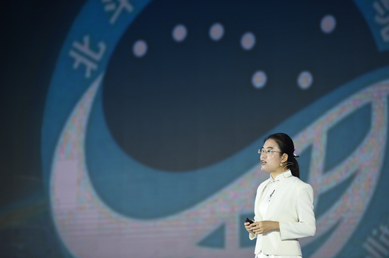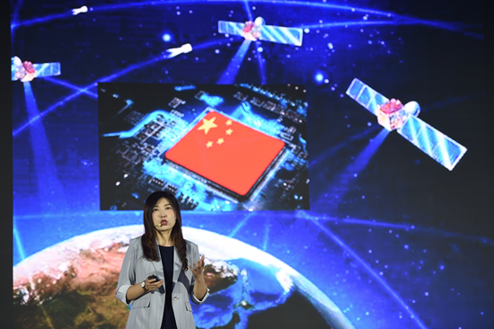 9月20日,2020年中国航天大会“青聚闽江”青年科学家论坛上的年轻人。图为中国空间技术研究院通信与导航卫星总体部导航卫星总体主任设计师冯文婧。宿东/摄
