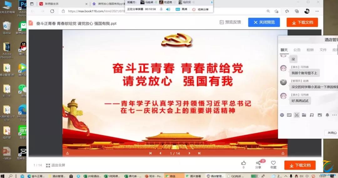 接团市委通知,根据共青团中央《关于认真学习宣传贯彻习近平总书记在庆祝中国共产党成立100周年大会上重要讲话精神的通知》要求和团省委工作安排,pp电子于2021年9月13日-9月16日在线上开展了“请党放心·强国有我”主题团日活动。