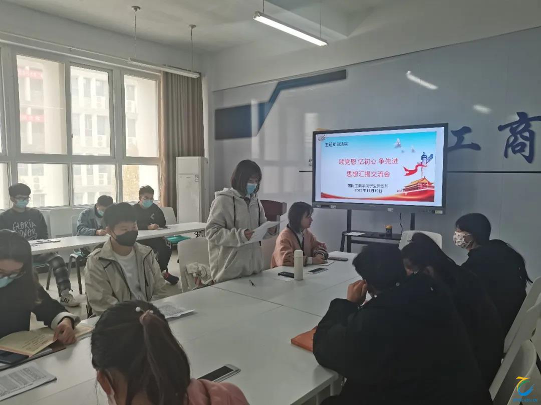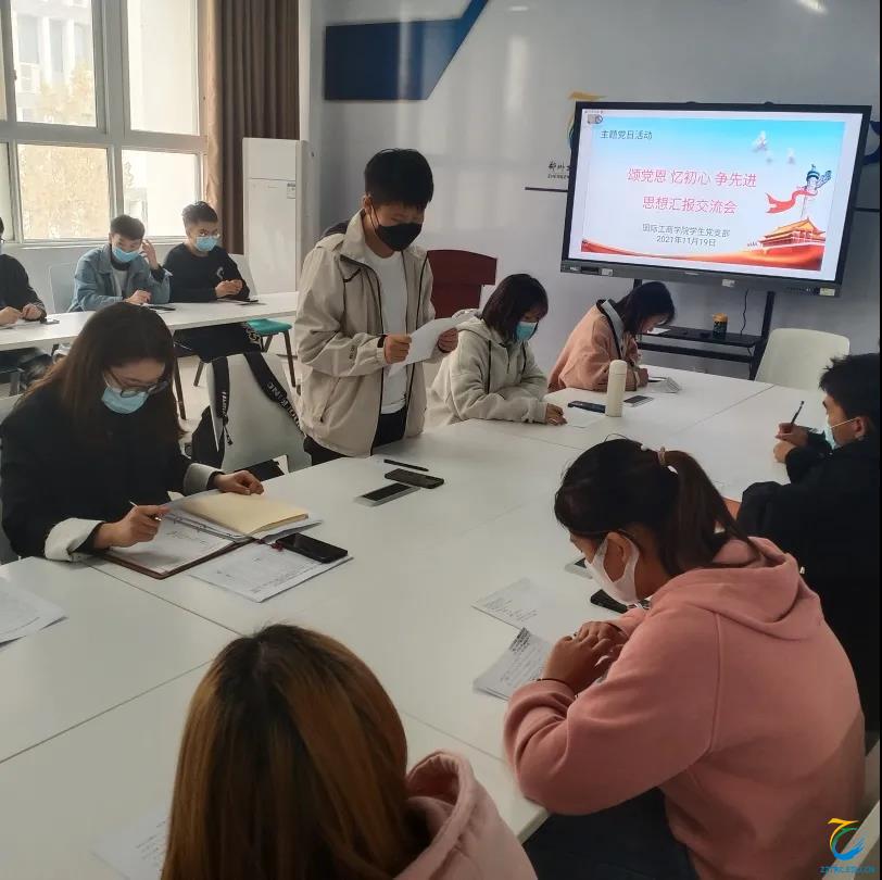 为切实加强入党积极分子的培养教育,进一步增强入党积极分子的凝聚力,提高入党积极分子对党的理论素养,端正入党动机,坚定理想信念,11月19日下午14:00,国际工商学院学生党支部于304会议室召开“颂党恩 忆初心 争先进”思想汇报交流会,会议由国际工商学院学生党支部书记葛秀丽主持,学生党支部副书记孙文霞、在校入党积极分子、预备党员参加。