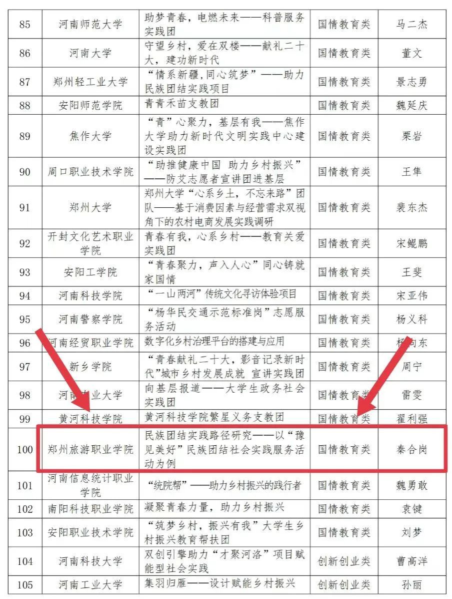 根据《河南省教育厅办公室关于组织开展第六届河南省“出彩中原”大学生社会实践活动的通知》(教办学(2022〕246号)要求,经各高校推荐、专家评审,110 项大学生社会实践活动项目获得立项。其中,pp电子游戏平台网站“薪火乡传·幸福家园”乡村振兴志愿服务团、民族团结实践路径研究——以“豫见美好”民族团结社会实践服务活动为例,共2个项目成功立项。