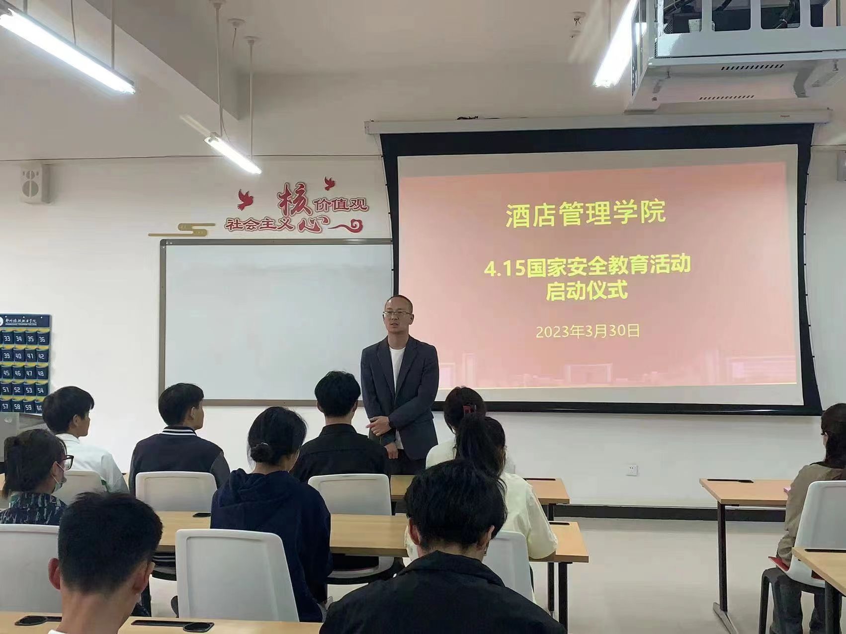 为进一步使安全教育真正走进学生心中,增强学生安全自我保护意识,进一步做好校园安全防范工作,减少事故的发生。酒店管理学院于3月30日下午在2b102召开“4.15国家安全教育活动启动仪式”,会议由孙孟珂老师主持,各班安全委员参加。