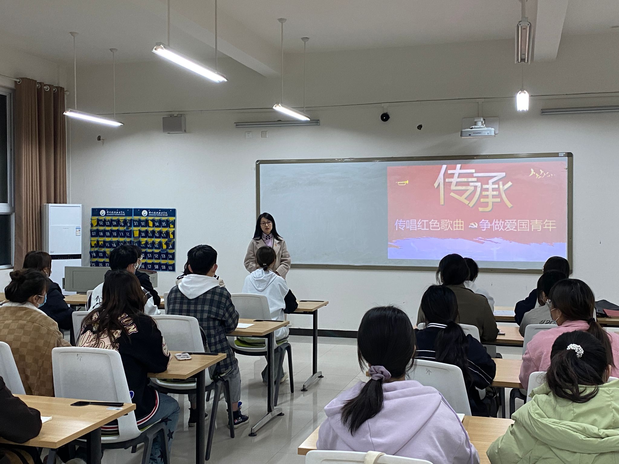 3月23日晚,旅游外语学院在清源楼207为入党积极分子上主题为“传唱红色歌曲 争做爱国青年”党课,主讲人为刘珍老师。