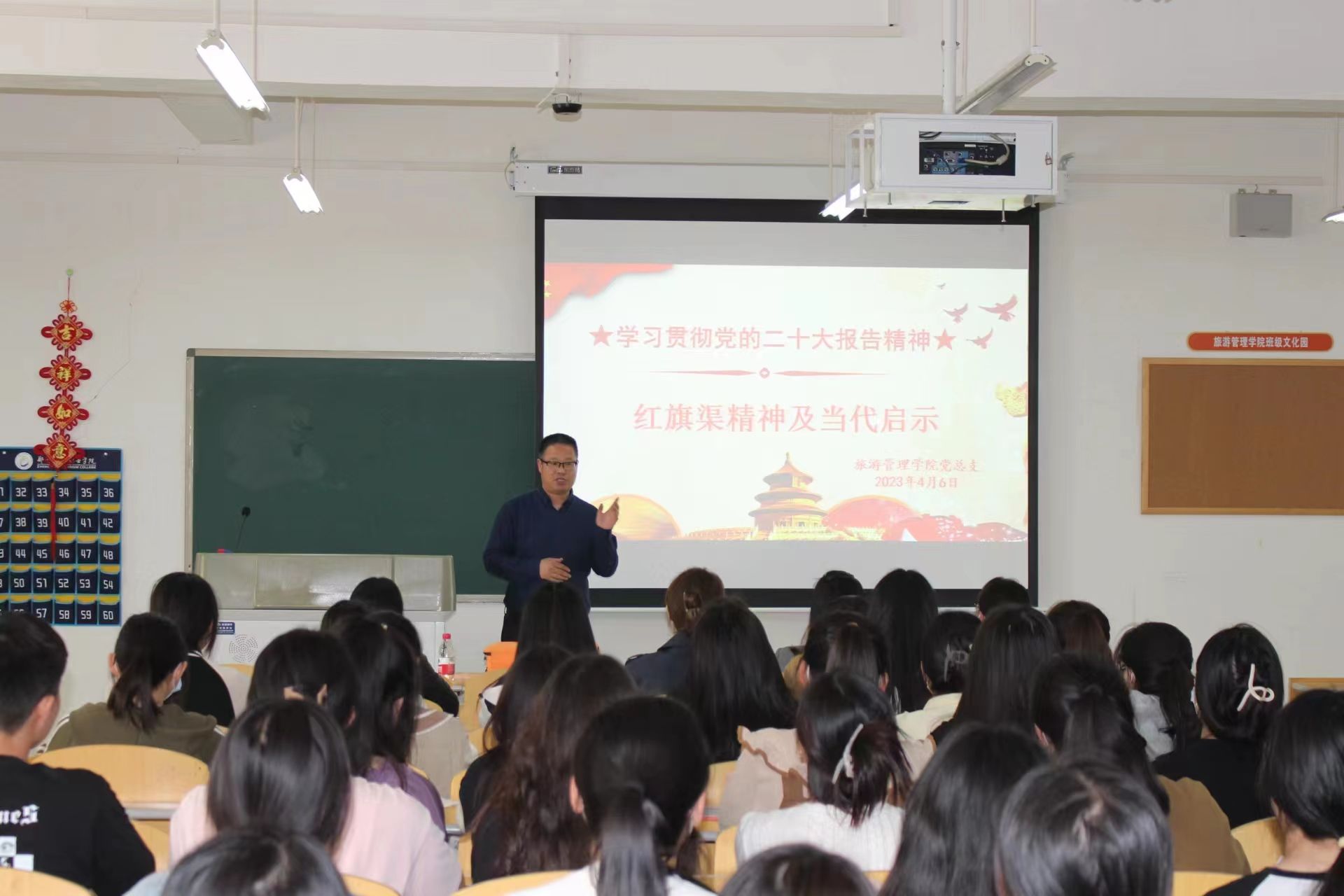 为深入学习宣传贯彻党的二十大精神,强化青年责任担当,引导师生踔厉奋发、勇毅前行。4月6日下午,旅游管理学院党总支书记秦合岗以“红旗渠精神及当代启示”为题,为学院师生宣讲党的二十大精神。