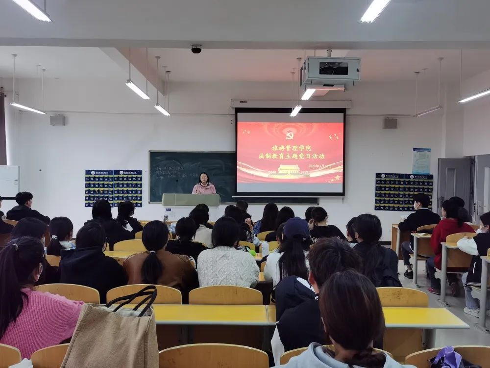 2023年4月21日中午12点,旅游管理学院学生党支部在毓秀楼5A406教室开展线上、线下相结合法治教育主题党日活动,学生党支部教师党员、学生预备党员、2021年度入党积极分子、2022年度入党积极分子参加此次活动,本次活动由学生党支部副书记张卿颜主持。