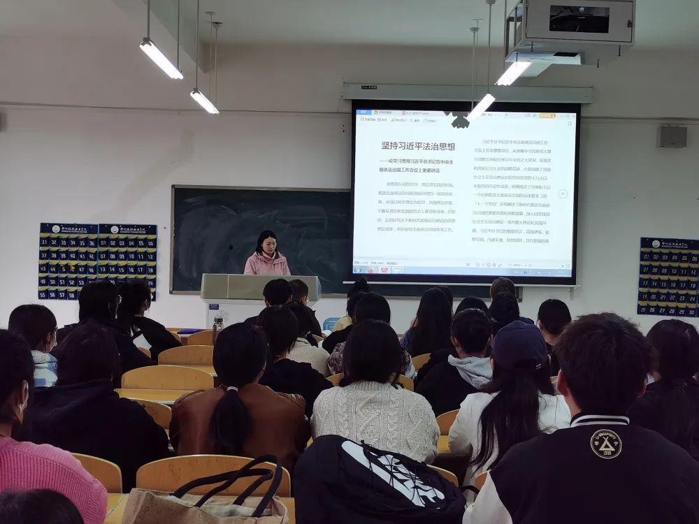 首先,学生党支部副书记张卿颜同志介绍本次党日活动的学习主题,并说明法治教育的重要性。其次,张卿颜同志带领支部师生重点学习“习近平法治思想”。习近平法治思想是顺应实现中华民族伟大复兴时代要求应运而生的重大理论创新成果,是马克思主义法治理论中国化最新成果,是习近平新时代中国特色社会主义思想的重要组成部分,是全面依法治国的根本遵循和行动指南。最后,教师党员、学生预备党员和入党积极分子分别派出代表分享了学习感悟,他们认为,要对我国的政治制度和法治体系有自信、有底气、有定力,从自身做起,努力提高全民族综合素质。