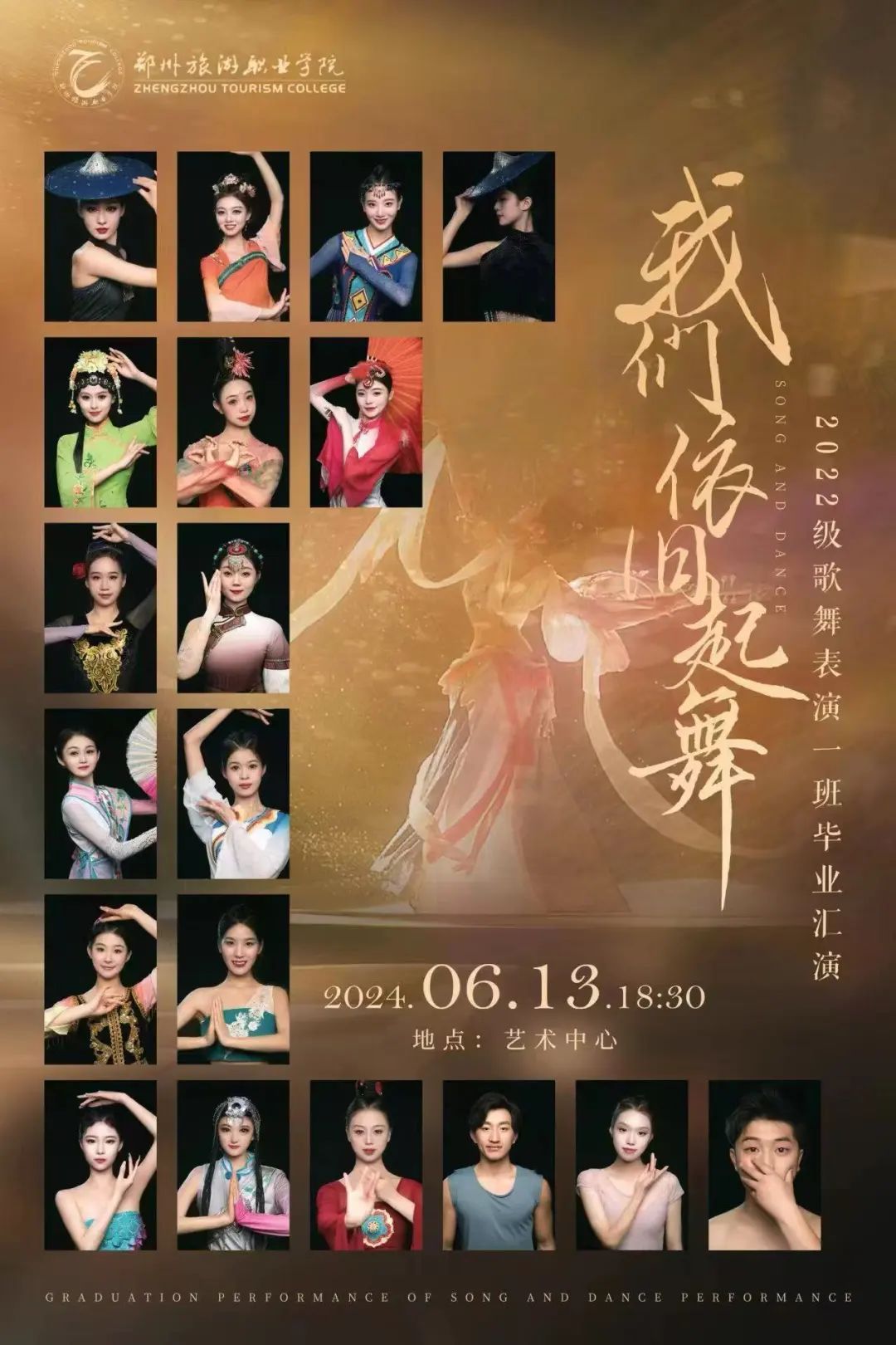 本专业培养能够践行社会主义核心价值观,传承技能文明,德智体美劳全面发展,具有一定的科学文化水平,良好的人文素养、科学素养、数字素养、职业道德、创新意识,爱岗敬业的职业精神和精益求精的工匠精神,较强的就业创业能力和可持续发展的能力,掌握本专业知识和技术技能,具备职业综合素质和行动能力,面向文化艺术和教育行业的文艺创作与编导人员、音乐指挥与演员、社会文化活动服务人员等职业,能够从事歌舞表演、舞蹈编导、文艺活动组织与策划和艺术培训辅导等工作的高技能人才。(目前招收舞蹈专业方向学生)。