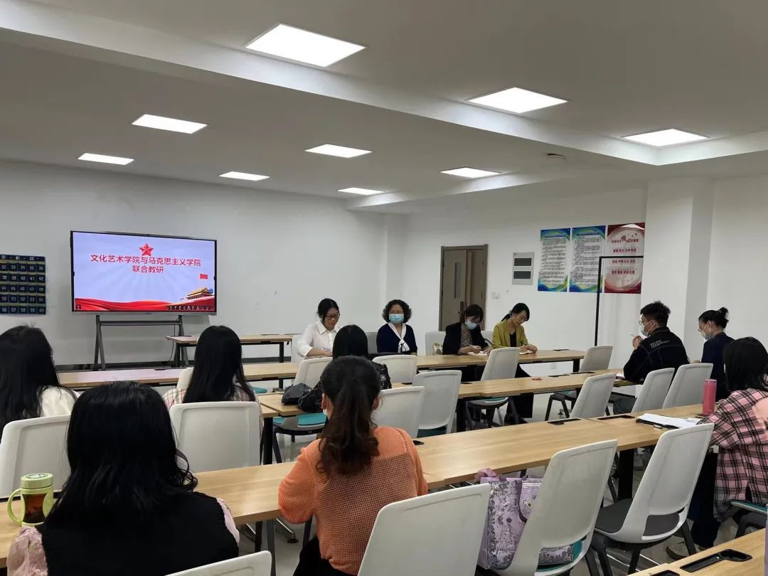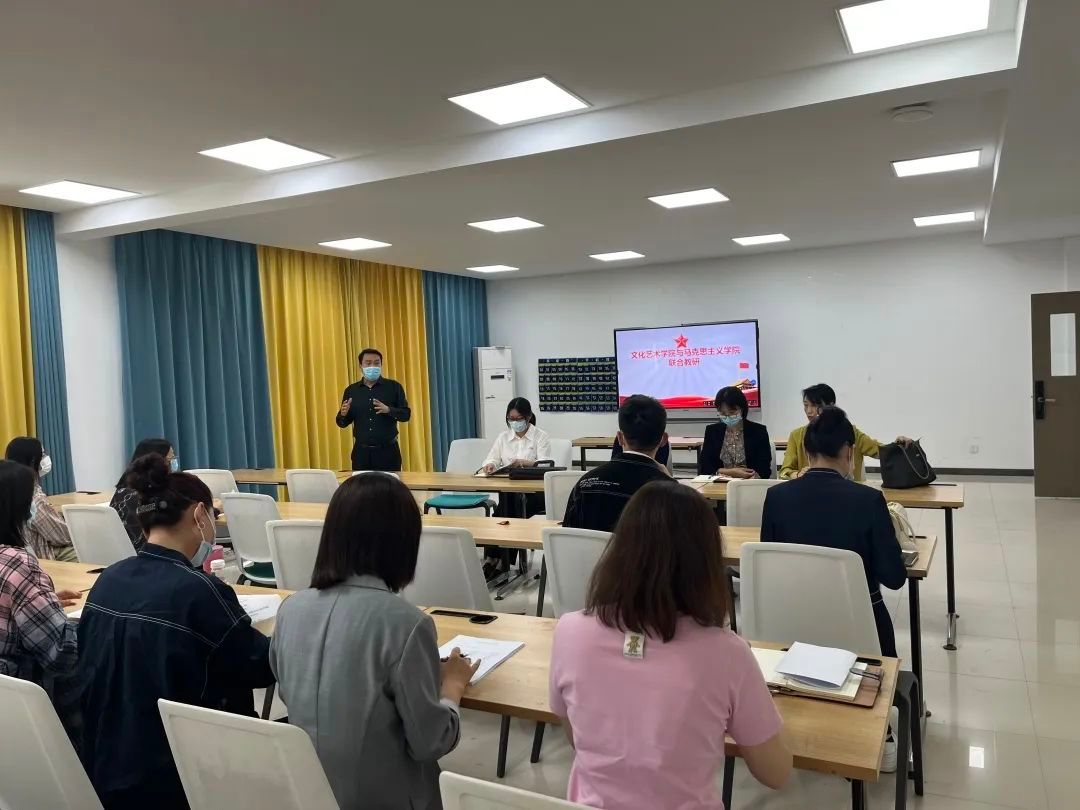 会上,马克思主义学院程教授介绍了课程思政教学设计思路以及如何实现思政元素与专业教学内容的有机融合。其次,动漫教研室、歌舞表演教研室主任分别介绍了专业基本情况,并对专业与思政融合提出问题。马克思主义学院教师对我院教师的疑问进行了解答,肯定了老师们在专业课程中融入思政元素的方法和特色,并对思政元素如何有机结合专业内容方面提出了建议。之后,老师们对于项目合作、课程思政等方面的开展进行了深入交流与探讨,参会教师均表示受益匪浅。