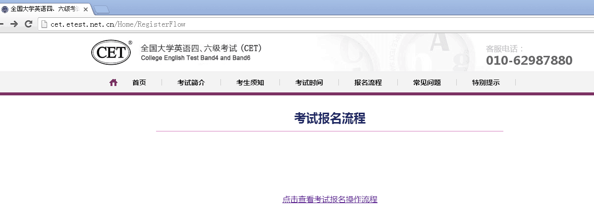 2、点击考试报名流程: