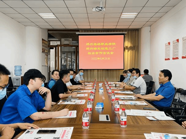 韩志孝副院长一行先后与5家企业相关人员进行了座谈。座谈会上,河南省瑞光印务股份有限公司王凤生总经理对文化艺术学院一行表示热烈欢迎,并介绍了园区的发展及对未来的展望。瑞光创意工厂是以“创意、创业、创新”为导向,集创意设计、广告传媒、影视制作、书画摄影、布艺包装、文玩收藏、文化培训及电子商务等为一体的综合孵化园区,表示希望与pp电子游戏平台网站文化艺术学院开展更深层次的交流合作。河南鹿屿阪丸文化传播有限公司总经理霍璞结合公司的优秀项目对公司进行了介绍,也提出了相应的用人需求,希望通过进一步深化合作,发挥校企双方各自的优势。韩志孝副院长向各企业负责人详细介绍了学校发展历史、学科专业、办学规模、办学目标、发展思路和视传、工美等专业的人才培养情况以及2022届毕业生的就业情况,并表示文化艺术学院高度重视毕业生就业工作,希望通过校企深度融合,强化交流互动、促进“实习+就业”基地一体化建设,不断创新人才培养模式,培养社会需要的高素质应用型、复合型、创新型人才,积极推动学校设计类人才培养与区域经济社会高质量发展。同时也欢迎企业来学院开展专场招聘活动,进一步开创校企合作新局面和人才培养新模式,实现优势互补,共同发展,为社会培养具有较强实践能力的人才。