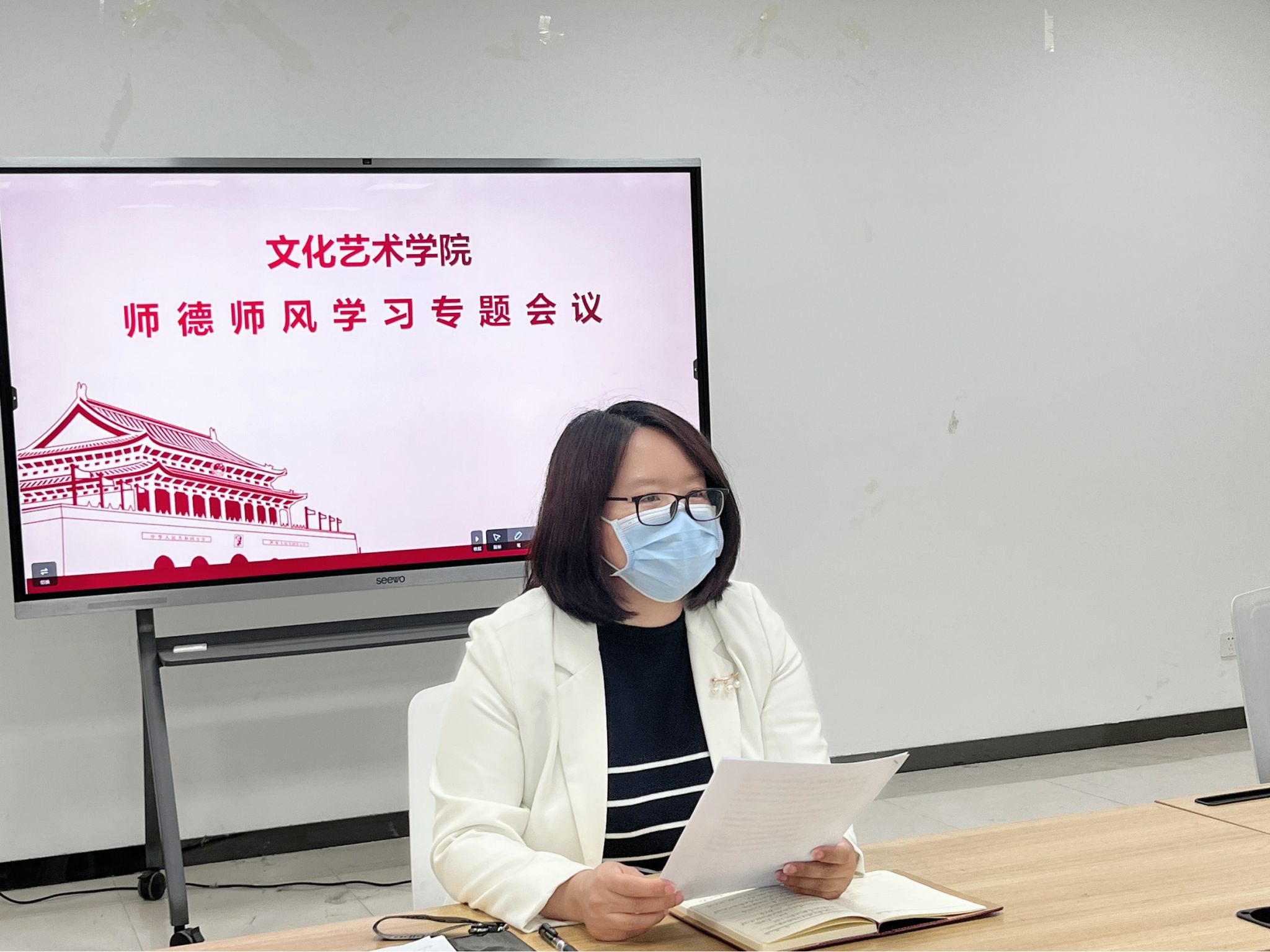 为进一步加强师德师风建设,规范教师从教行为,提升全院教师“教书育人、立德树人”的使命感和责任感,牢筑崇德敬业的思想底线,加强科研诚信和学术道德规范建设,根据学校统一部署,文化艺术学院组织全体教师于2023年5月10日下午2点,开展师德师风专题学习研讨会。会议由我院党总支书记杨慧丽主持,全体教职工参加本次会议。本次会议分为集中学习和分组研讨两个环节。