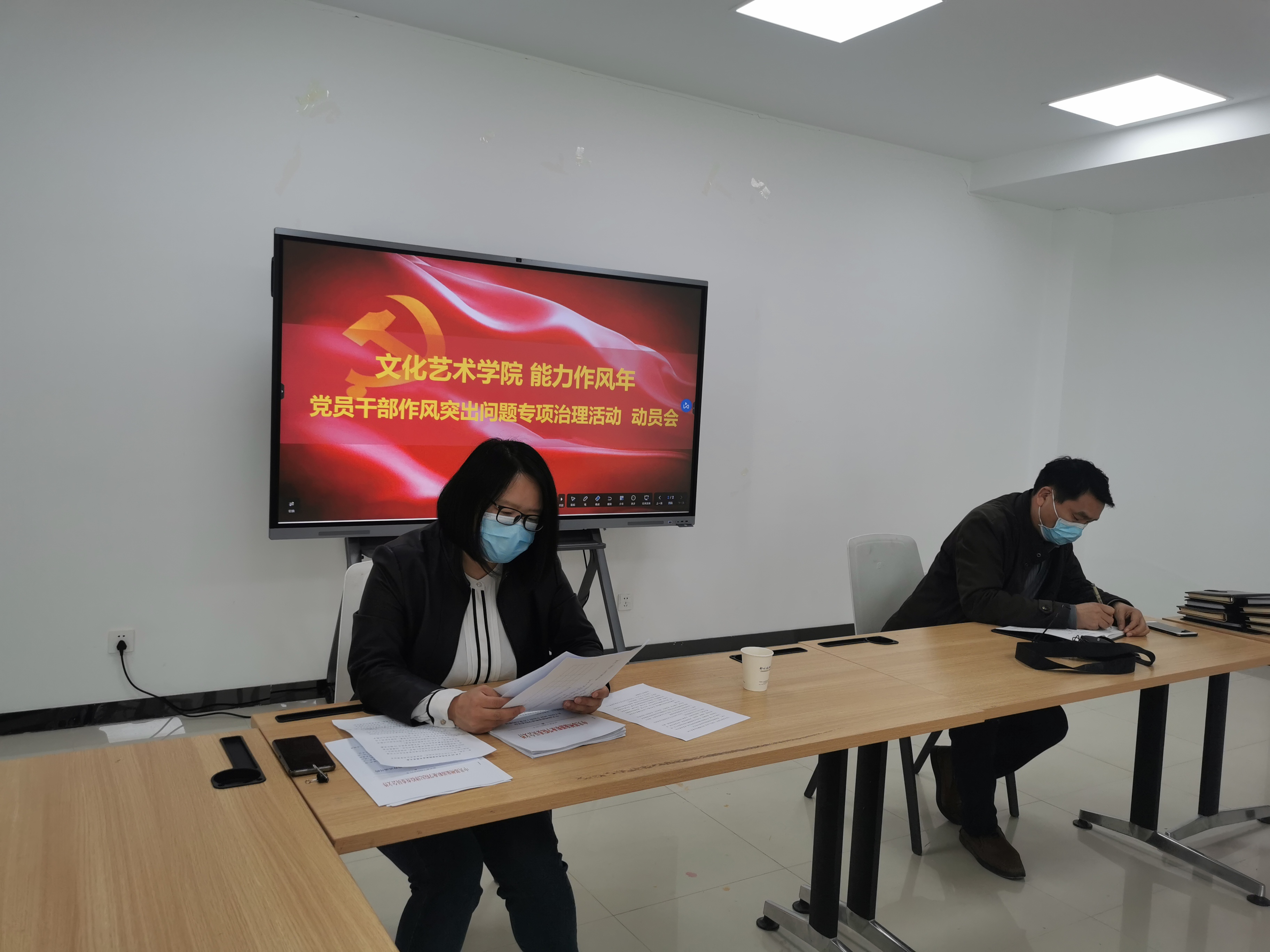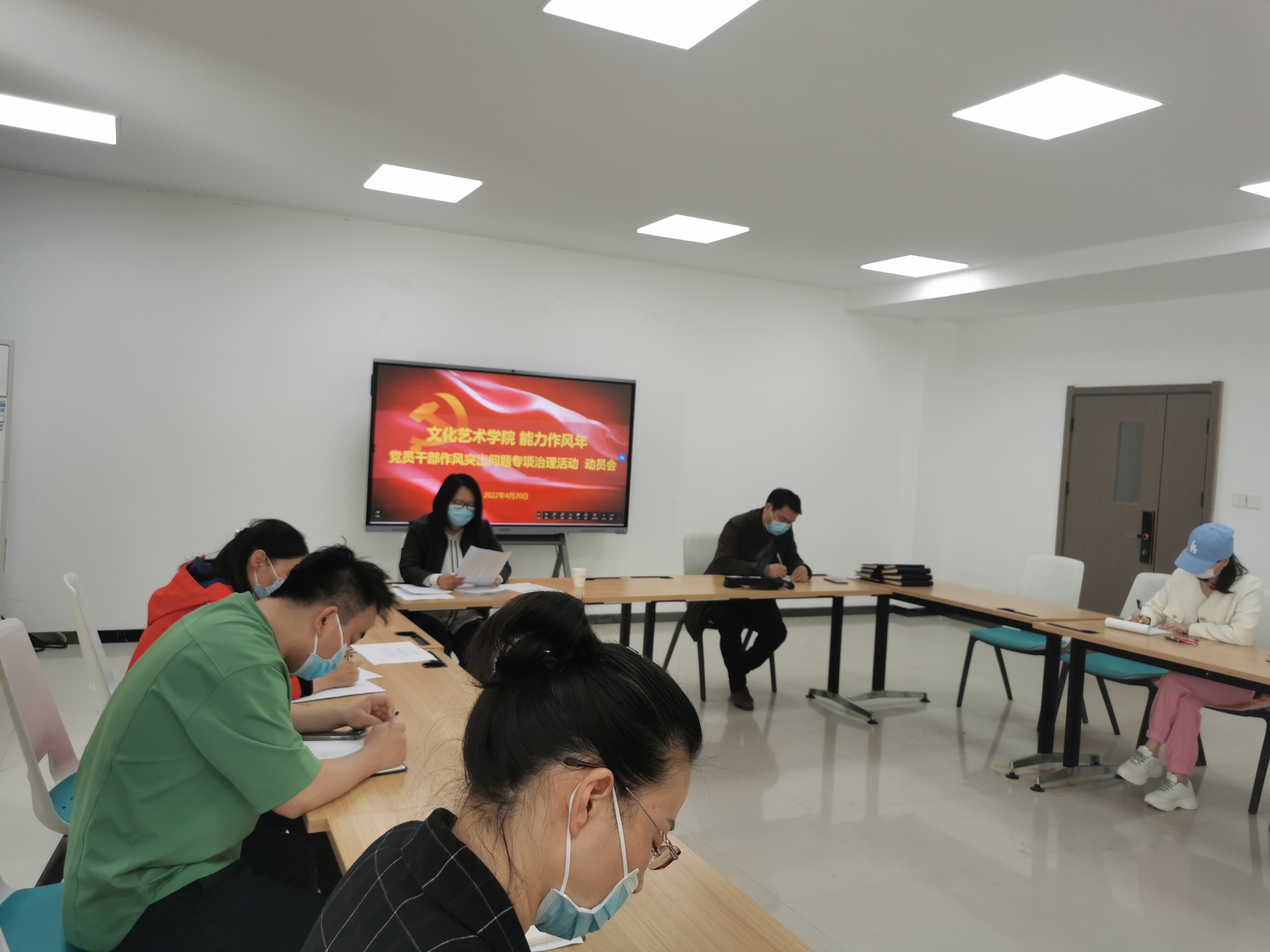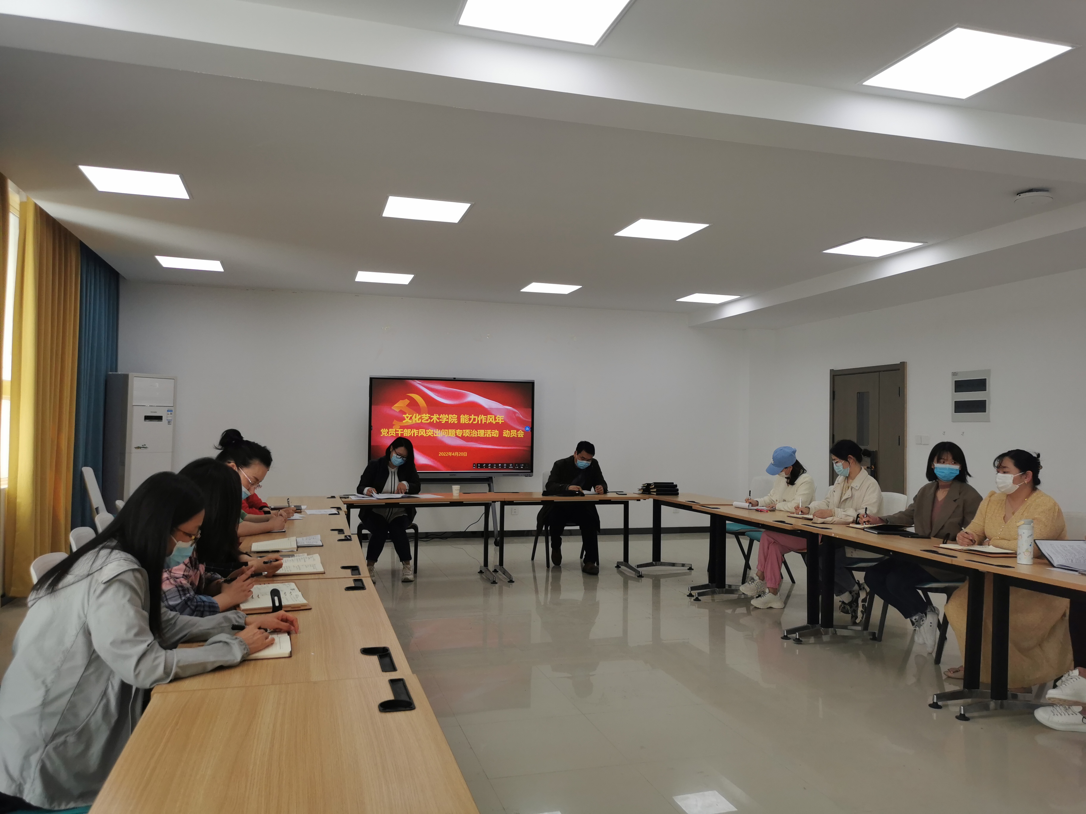 4月20日下午,文化艺术学院在7B02会议室召开2022年清廉活动月暨党员干部作风突出问题专项治理活动动员部署会。会议由文化艺术学院党总支书记杨慧丽主持,学院全体党员和副科级以上干部参加了此次会议。