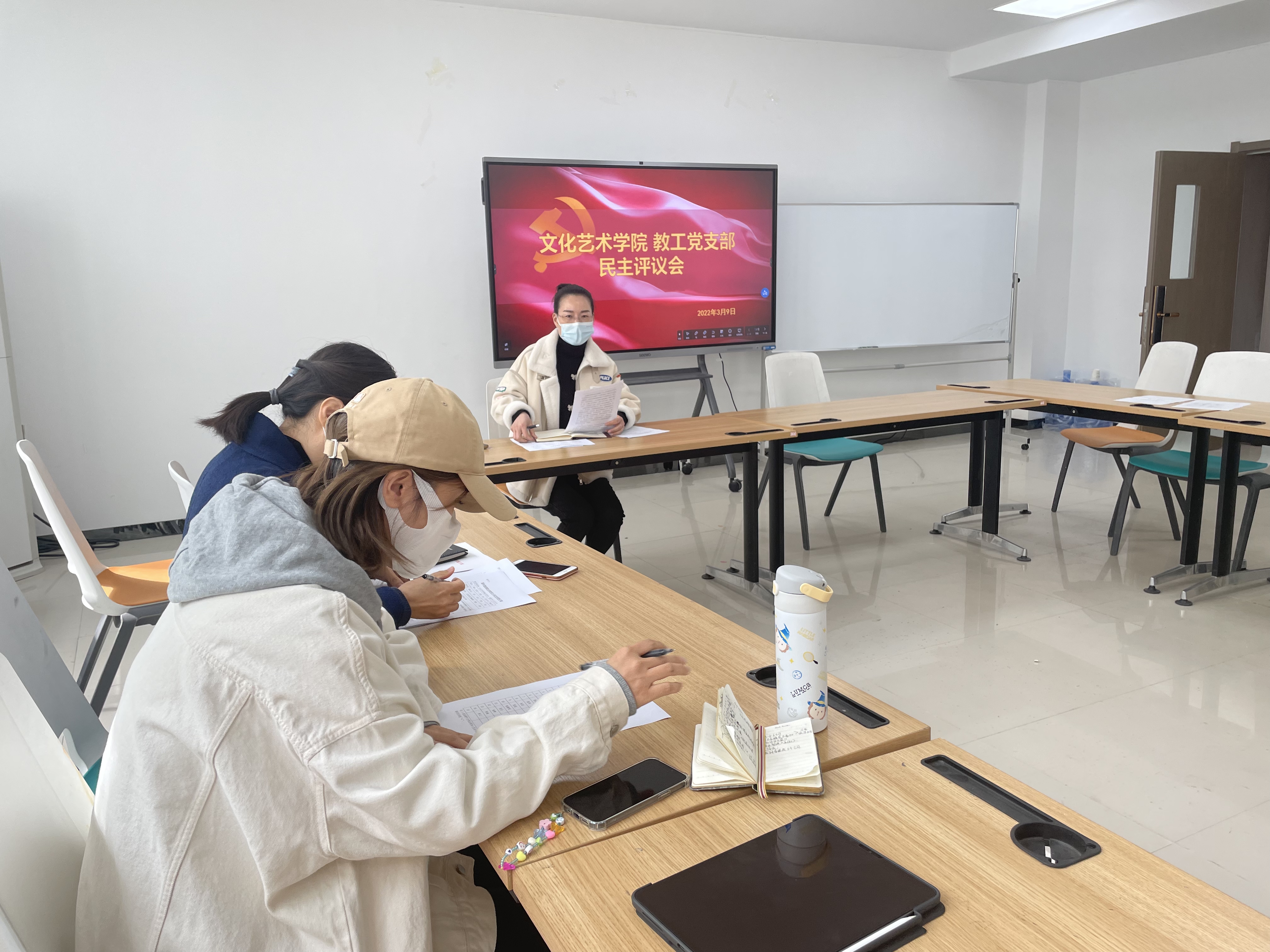 为了深入学习贯彻习近平总书记“七一”重要讲话及关于教育的重要论述等,学习党的十九届六中全会精神特别是《中共中央关于党的百年奋斗重大成就和历史经验的决议》等全会文件和辅导材料,学习党章和《中国共产党普通高等学校基层组织工作条例》等党内法规,并就其中内容展开讨论,比照自身进行批评和自我批评,同时做出民主评议,文化艺术学院教工党支部于3月9日下午13:30在7号楼102召开了此次组织生活会暨民主评议会议,参加会议的有教工党支部书记李培同志以及全体党员。