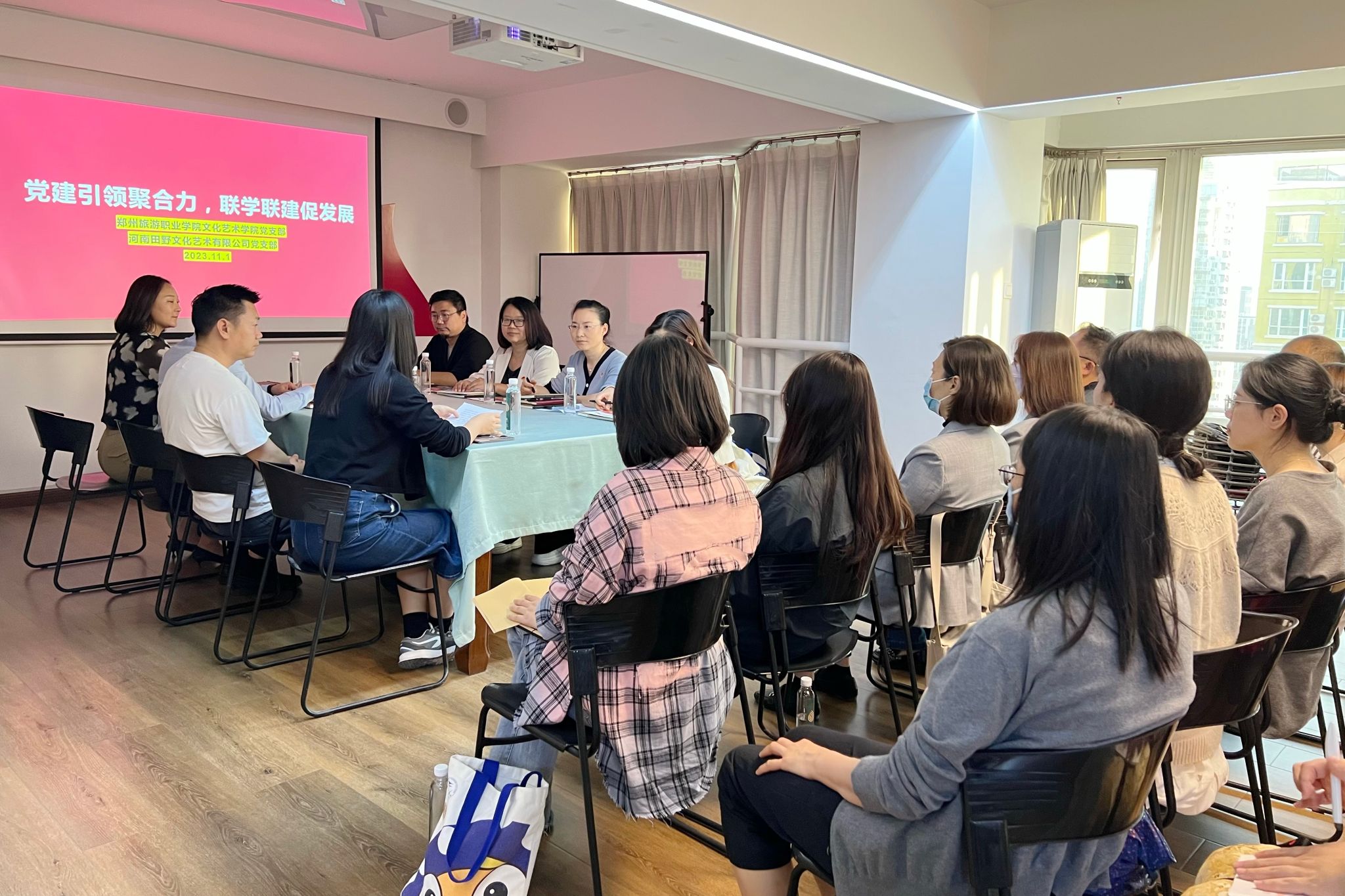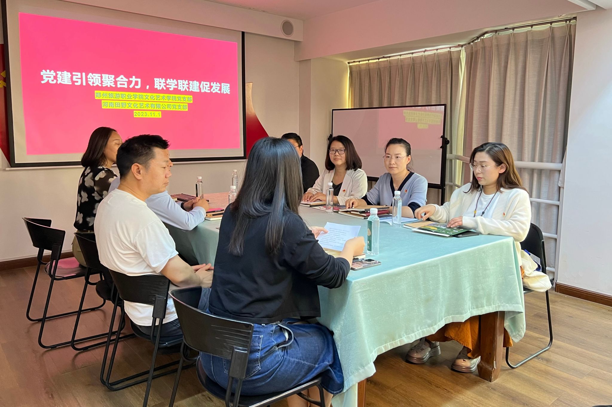 11月1日下午,文化艺术学院党总支与河南田野文化艺术有限公司党支部开展联学联建活动。我院党总支书记杨慧丽,河南田野文化艺术有限公司总经理朱沉浮,及双方党员代表共计30余人参加此次主题党日活动。