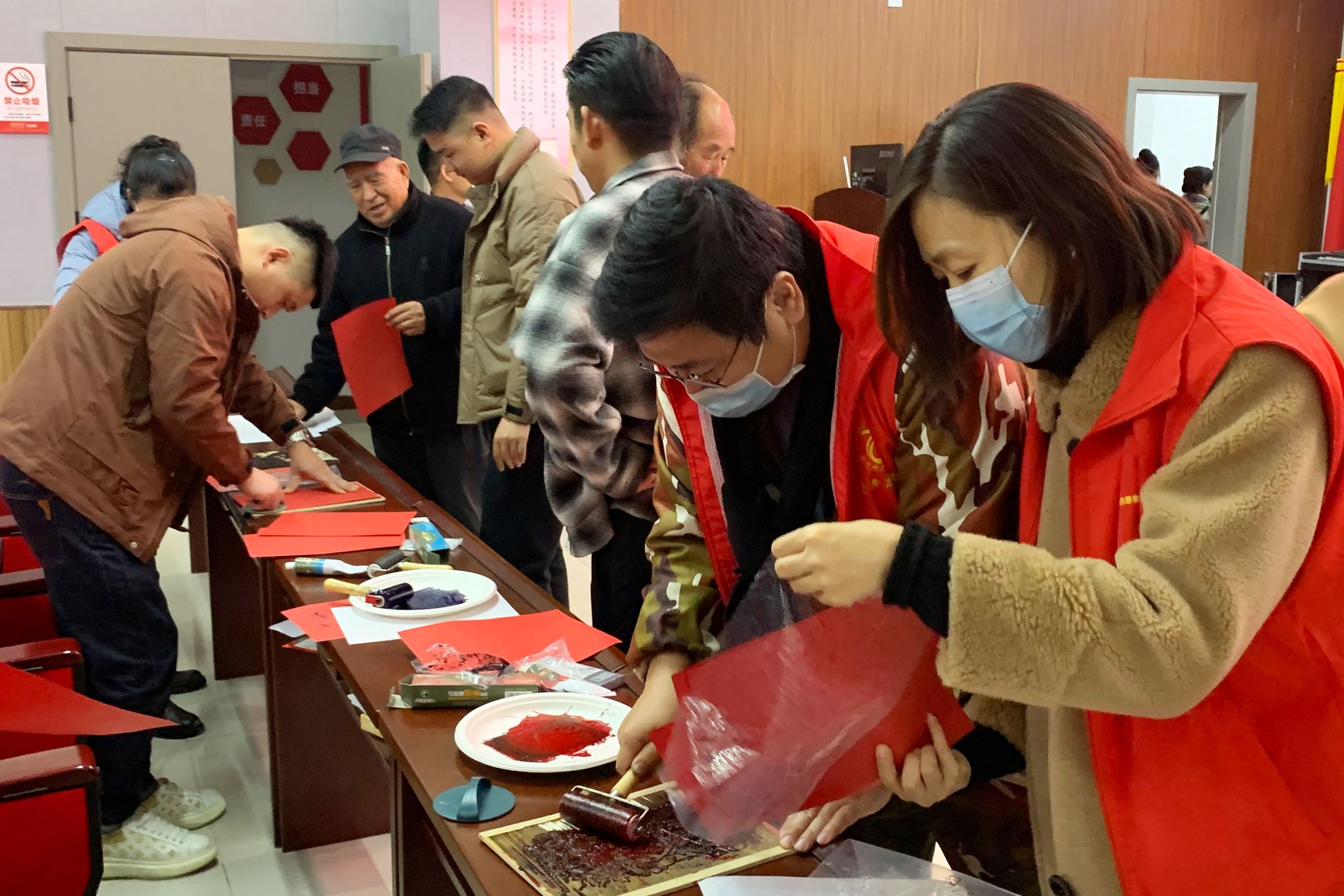 演出结束后,视传与工美教研室主任朱江,带领现场居民走进艺术,了解体验非遗木板年画制作过程。