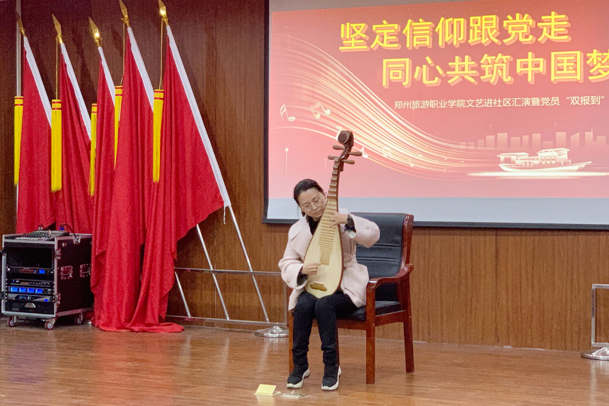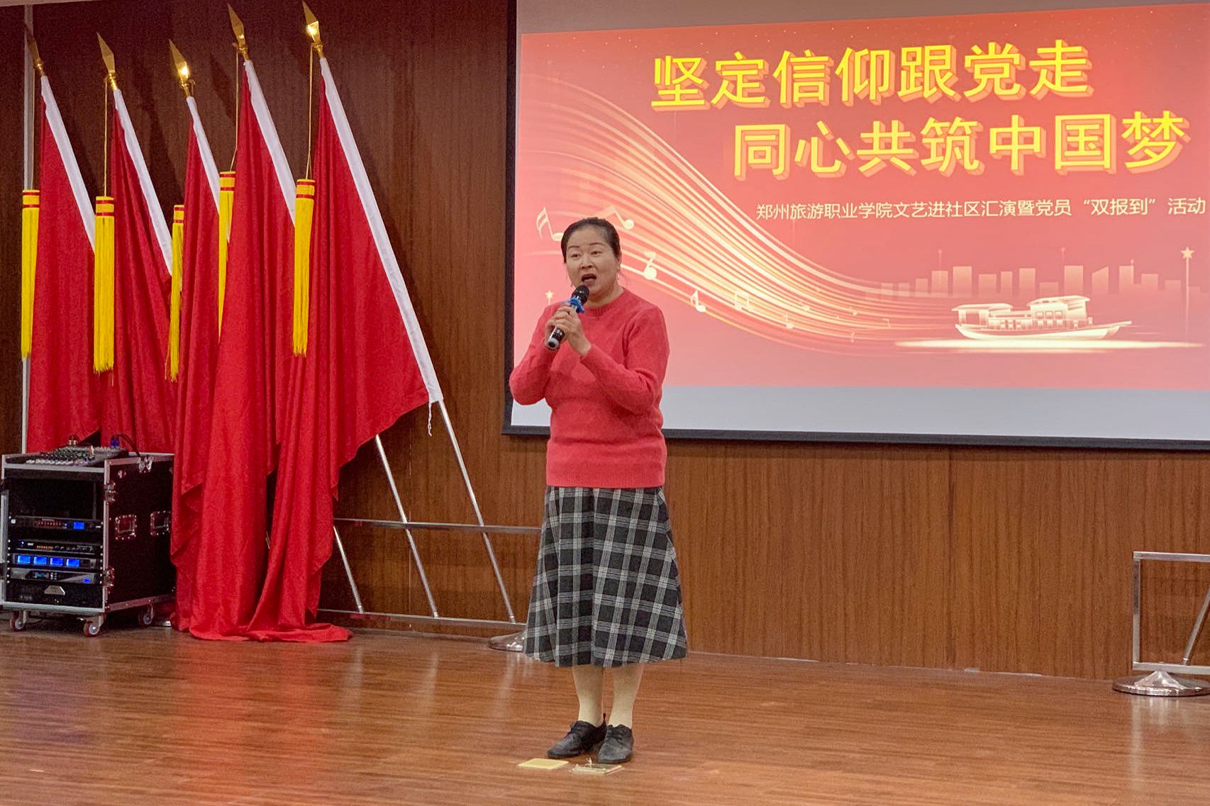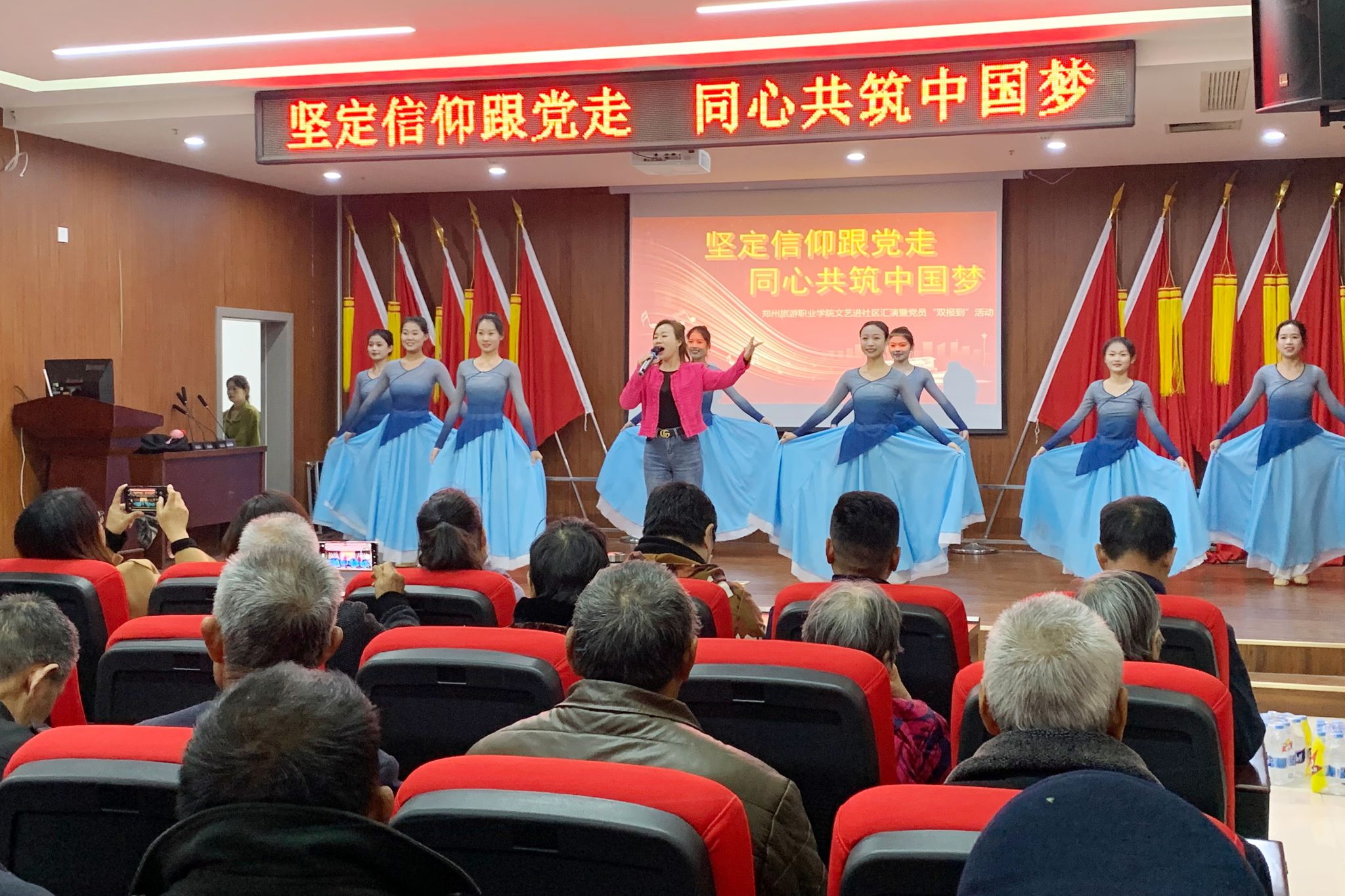 为扎实推进学习贯彻习近平新时代中国特色社会主义思想主题教育,将主题教育和专业实践深度融合。11月22日下午,由文化艺术学院党总支书记杨慧丽带队,组织学院部分党员干部及教师志愿服务队成员共30余人,一行来到豫兴路办事处朱庄社区进行文艺志愿服务暨党员“双报到”活动。以实际行动践行志愿精神,立足专业优势做贡献,服务群众干实事,彰显文艺青春力量。