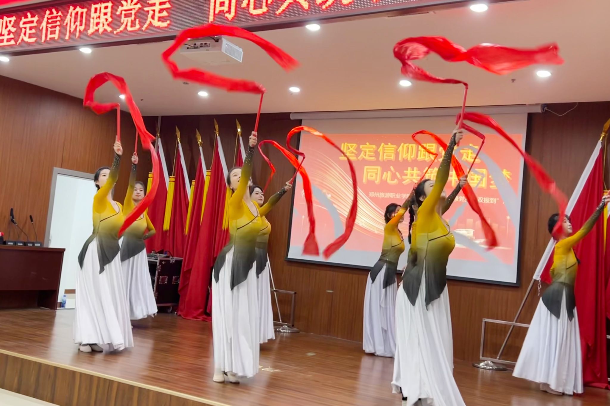 文艺汇演活动在音乐舞蹈教研室主任王丽演唱的歌曲《榜样》中拉开序幕,吴蓉老师演奏的琵琶独奏《赶花会》、跆舞《跆风来袭》、杨懿娟老师演唱的京剧《红灯记》选段、舞蹈《万疆》等精彩节目轮番上演,将文艺汇演推向一个又一个高潮,赢得了现场观众的热烈掌声。