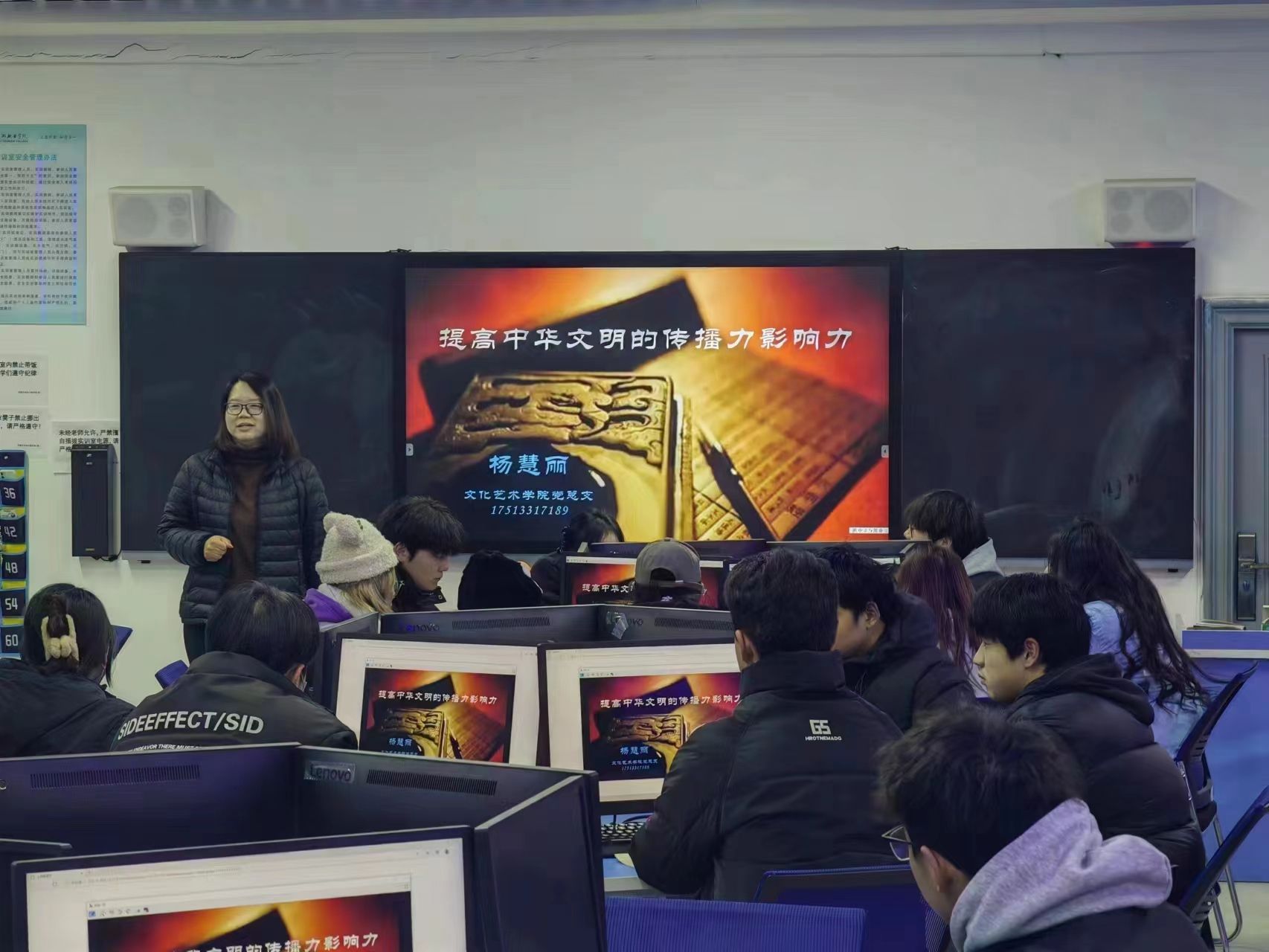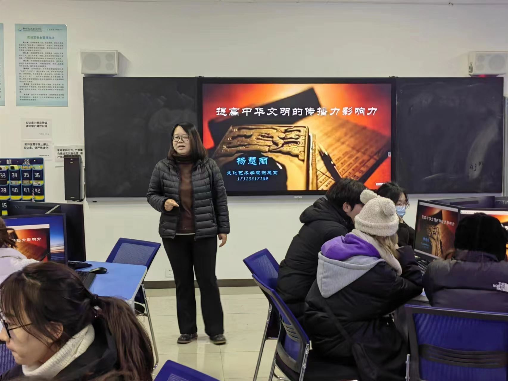 12月21日下午,我院在游艺楼7B202室开展2023年度入党积极分子培训第三讲,学院党总支书记杨慧丽以“提高中华文明的传播力影响力”为主题,为大家呈现了一堂生动又深刻的思政党课。