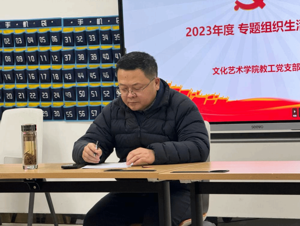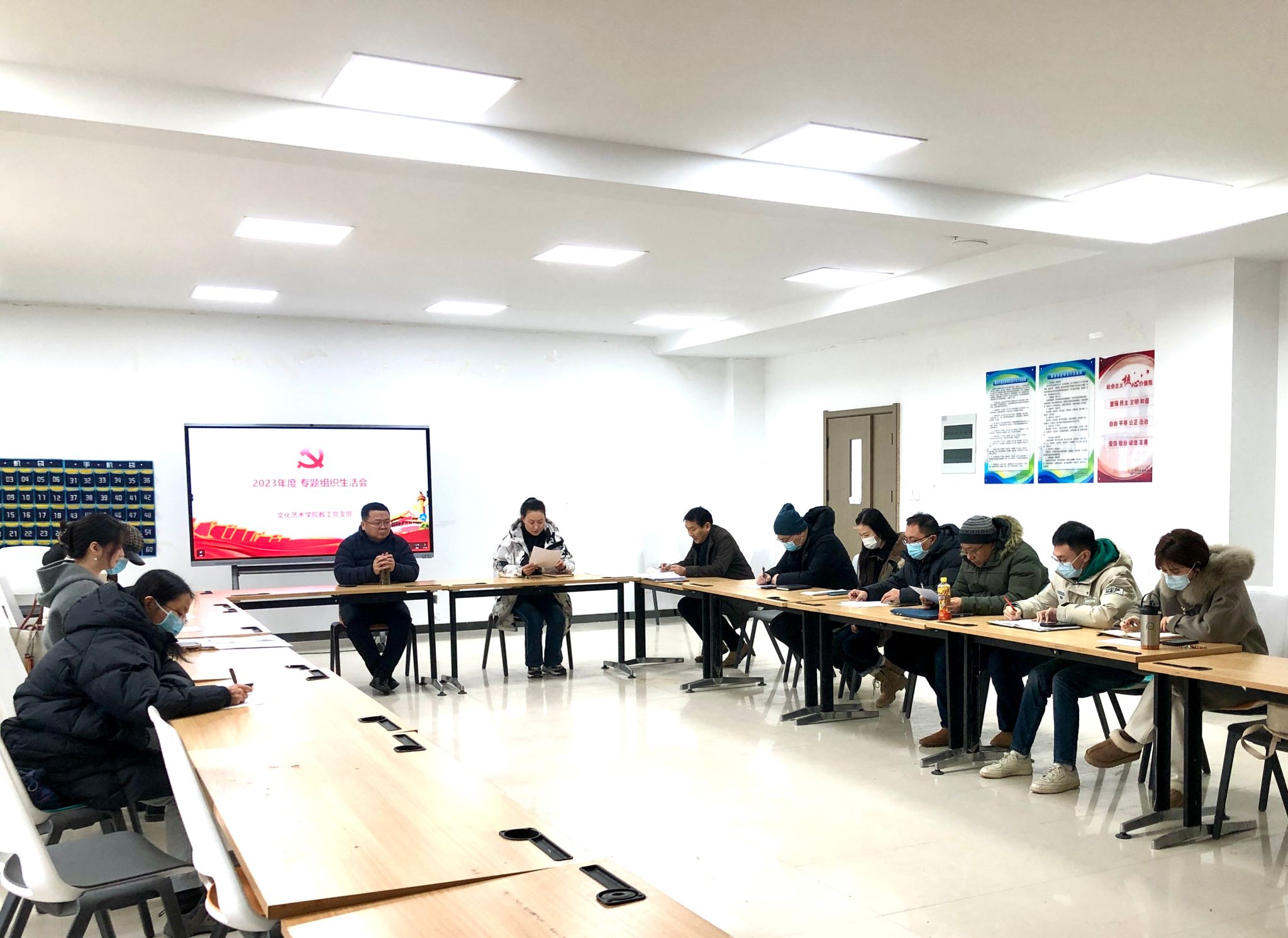 1月17日下午,根据校党委的统一安排,文化艺术学院教工党支部在7号楼102室召开主题教育专题组织生活会暨民主评议党员工作会。会议由教工党支部书记李培主持,全体党员参加。校党委委员、副校长张建军应邀与会指导。