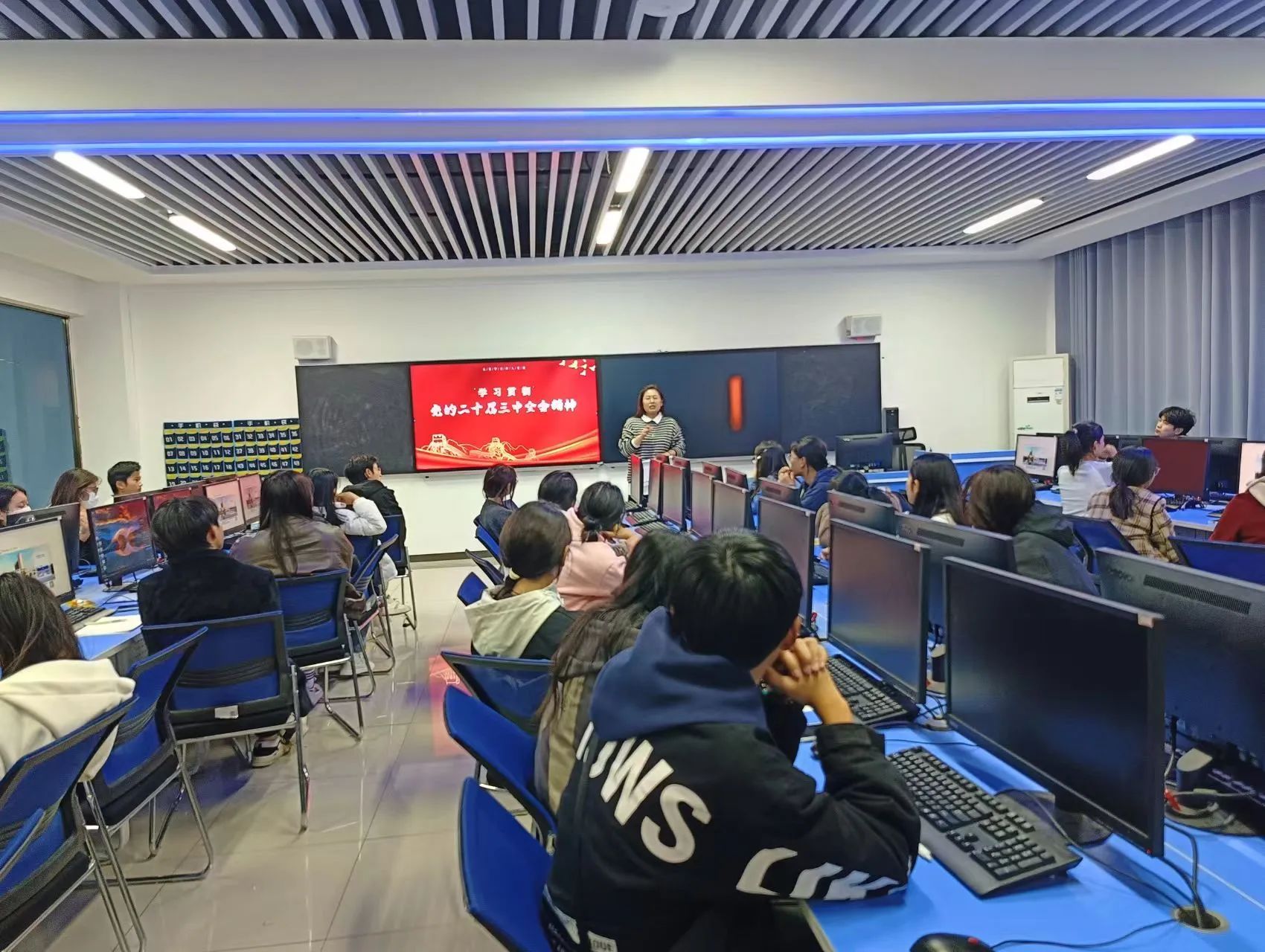 课上,冯思源解读了全会提出的主要任务和目标。她强调,这些任务和目标是实现我国经济社会发展的关键所在,需要全党全国各族人民共同努力。她结合学院发展、学生个人成长与发展深刻阐述了全会精神,鼓励同学们要积极进取,以全会精神为指导,武装思想和头脑。