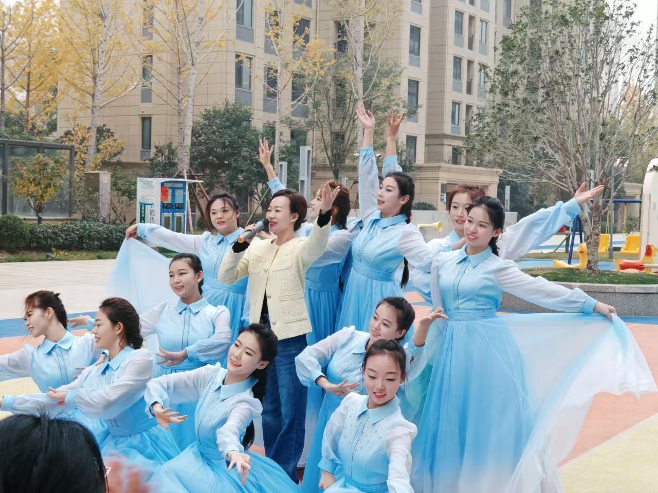 师生志愿者们以饱满的热情和精湛的技艺,为社区居民献上了精心准备的节目。从悠扬的歌声到欢快的舞蹈,每一个节目都洋溢着青春的活力和对美好生活的向往。