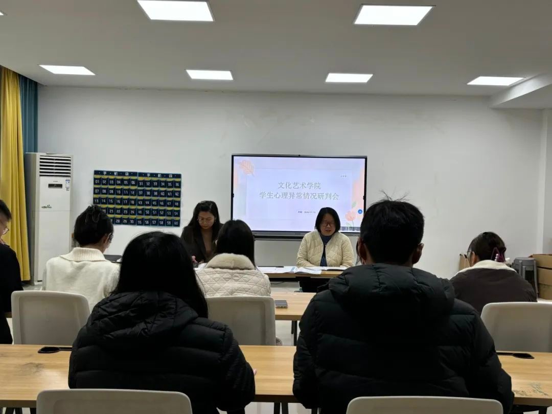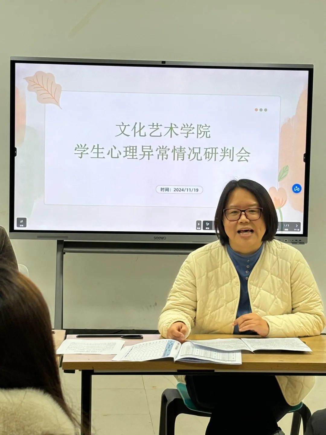 为精准研判学生心理动态,制定有针对性的干预措施,确保学生的心理健康,维护校园环境的和谐与稳定,文化艺术学院于11月18日在7B102召开了学生心理危机干预与应对专题研讨会。此次会议旨在深入剖析2024级新生中涌现的各类心理健康问题,并探讨相应的解决策略。会议由党总支书记杨慧丽主持,团总支书记冯思源及全体专兼职辅导员参加会议。