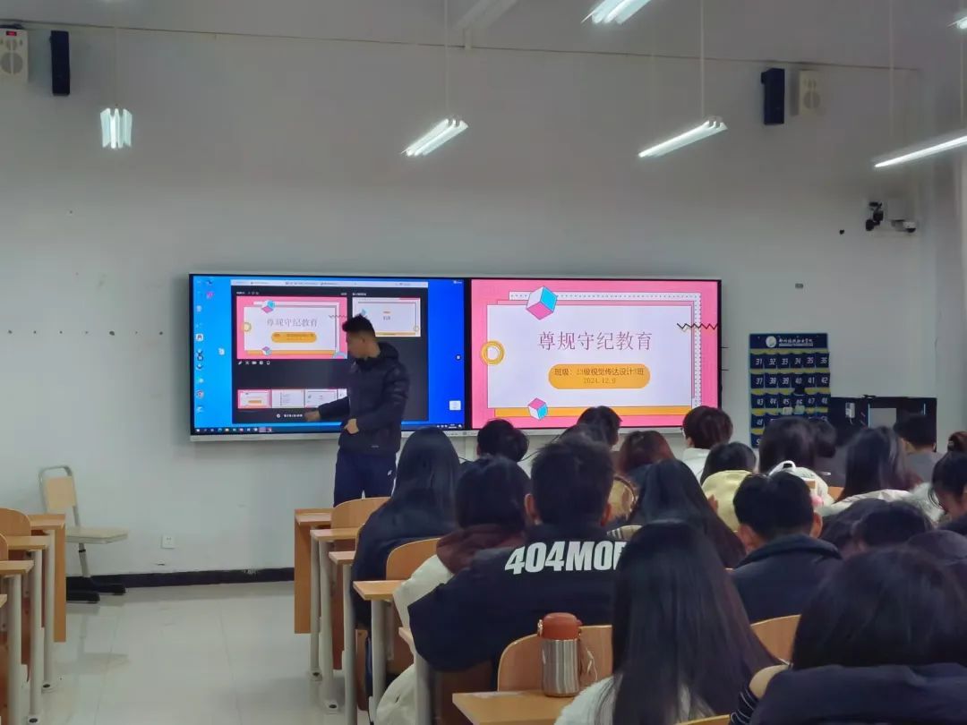 我院于12月9日至10日开展“遵规守纪教育”主题班会。为引导学生树立正确的行为规范和价值观,增强学生对学校及社会规章制度的认知与理解,使其深刻认识到遵规守纪对于个人成长、班级建设以及校园和谐稳定的重要意义。