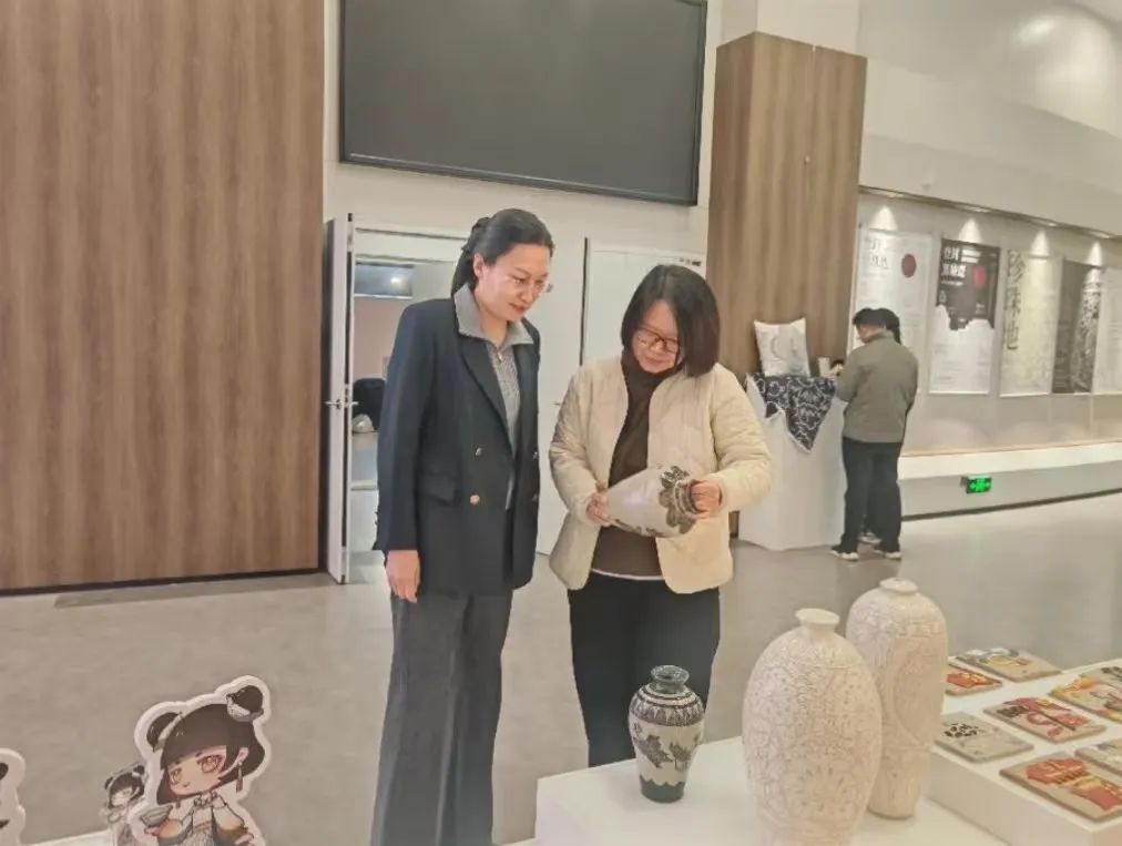 活动现场,各式各样的展品琳琅满目,有运用国家级非遗项目登封窑技法制作或复刻的陶瓷作品、有以登封窑陶瓷纹样、技艺为主题的文创产品,也有传统扎染布艺作品,更有以非遗技艺及传承为主的采风摄影作品和AI作品。展览吸引了大批师生驻足观看,沉浸于传统文化的深厚魅力之中,同学们在观看的同时纷纷拍照留念,感叹非遗技艺的独特之美,也被实践团队师生的事迹所感染,希望今后有机会加入实践团队,参与更多的文化实践活动。