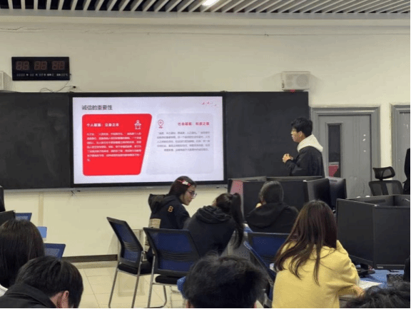 首先,各班开展“诚信立身·秉信立行”主题班会。在班会上,班主任带领本班学生讲解诚信案例,强调诚信在学习中、生活中的重要性,引导学生对诚信做人、诚信做事的追求,同学们认真聆听,结合自身经历和所见所闻,积极讨论对诚信的理解和感悟。