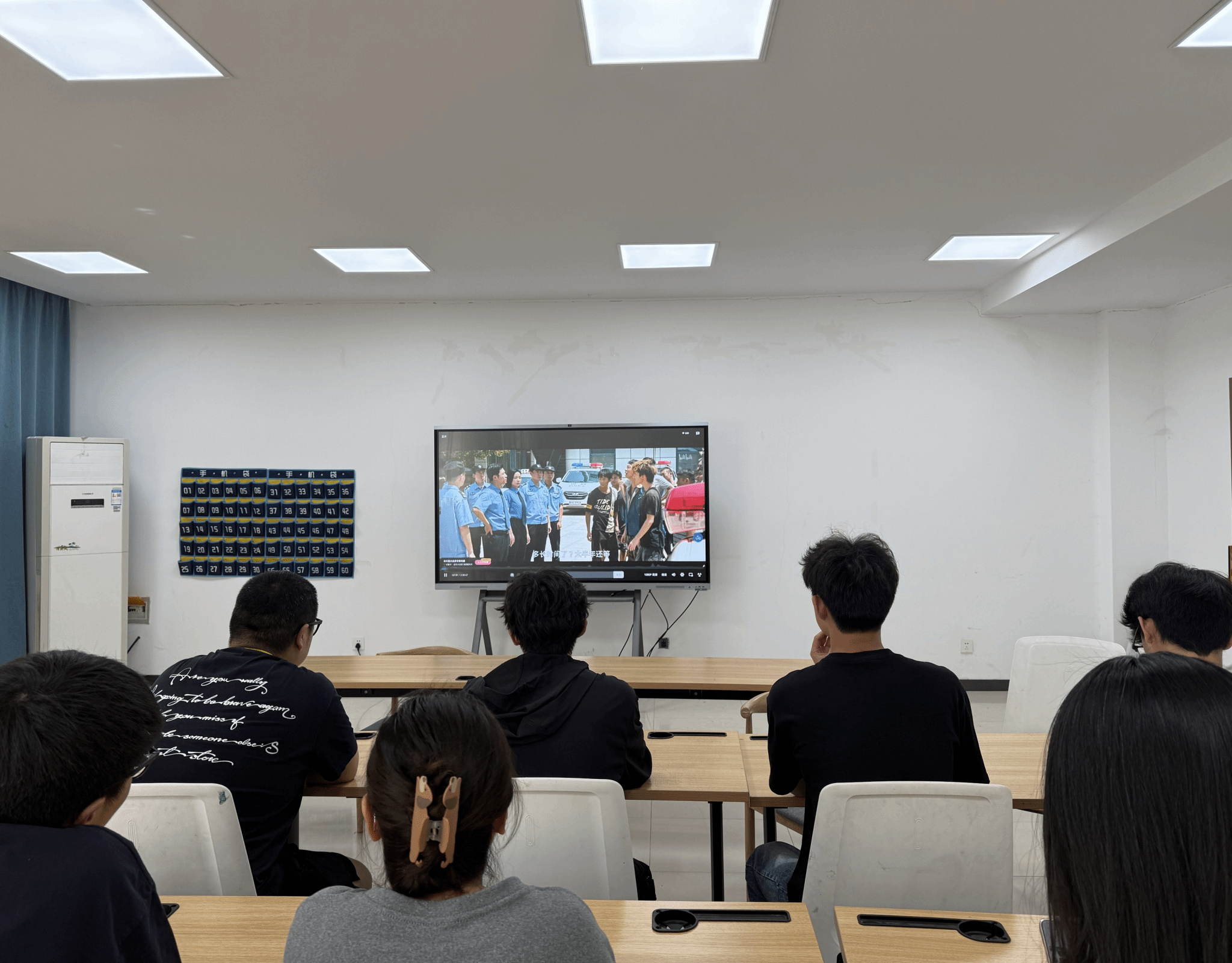 随后,组织全体学员集中观看了法律题材电影《第二十条》。该片讲述了基层法律工作者坚守法治底线的故事。电影深刻理解了“法律是道德的底线”这句话的含义,引导学生校规校纪就是我们校园生活中的“法律”。