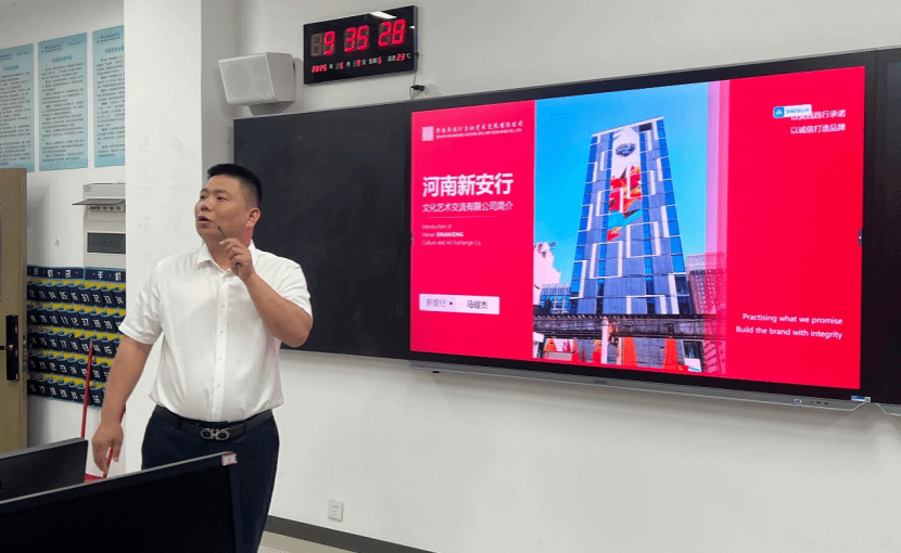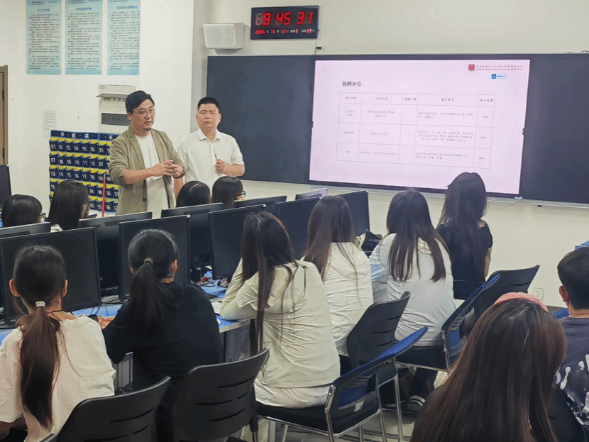 5月9日,河南新安行文化艺术交流有限公司总经理马耀杰带队走进pp电子游戏平台网站文化艺术学院,为2023级视觉传达设计专业学生举办宣讲招聘会,聚焦企业概况、招聘需求与校企合作前景。