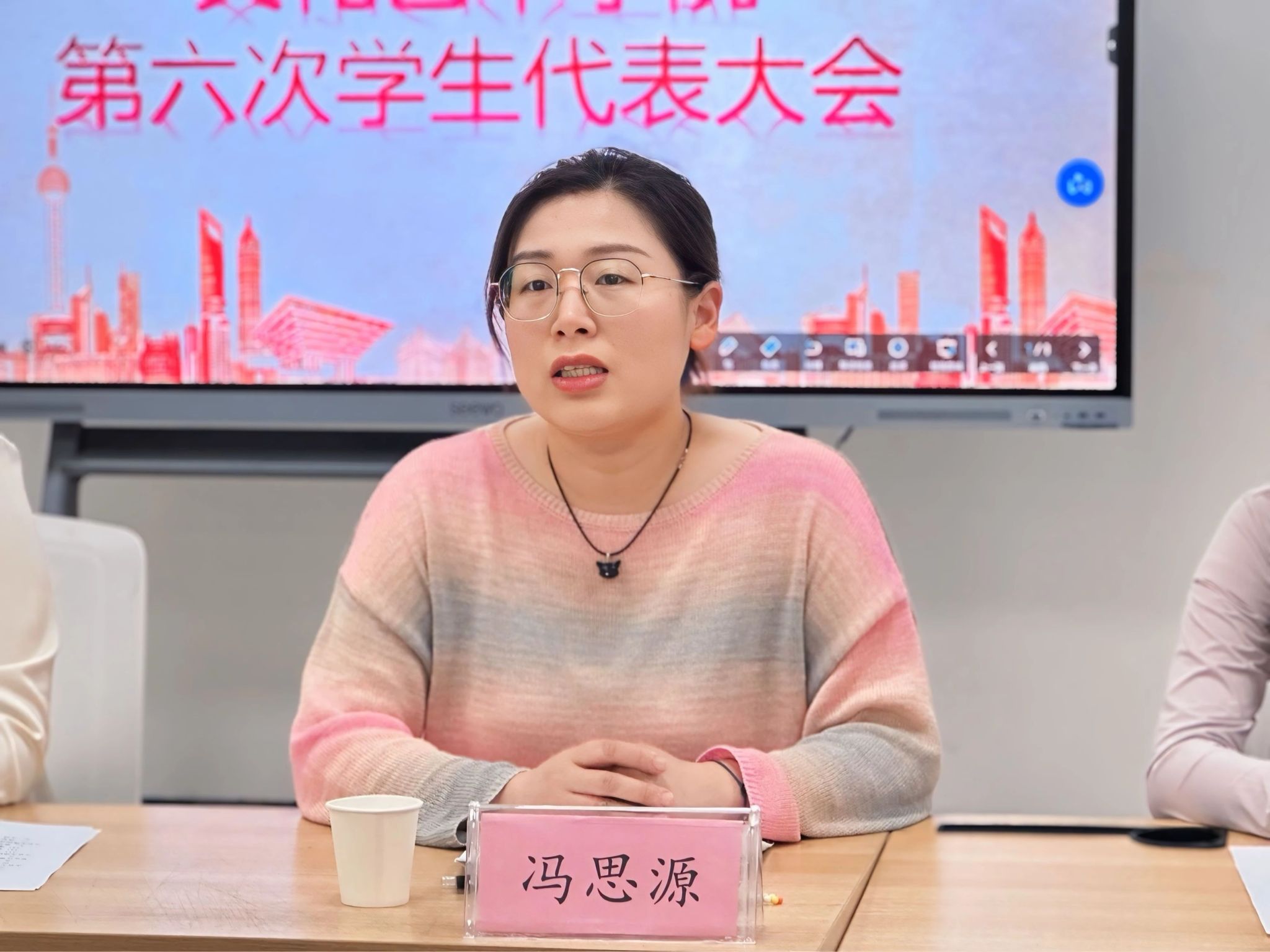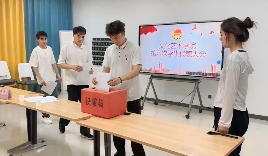 5月14日下午,文化艺术学院第六次学生代表大会于7b102教室顺利召开。学院党总支书记杨慧丽、团总支书记冯思源以及全体专职辅导员出席会议,35名学生代表齐聚于此,共绘新蓝图,本次会议由冯思源主持。