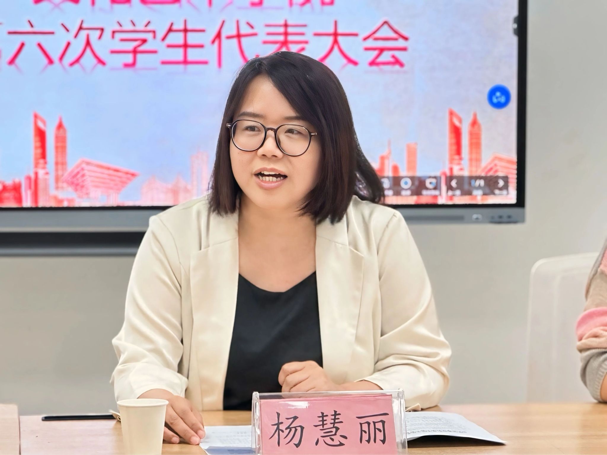 首先,杨慧丽对过去一年学生工作的成绩给予肯定,表示此次大会是民主建设关键之举、学子践行使命之平台。勉励学生代表强化自身建设,成为同学信赖的“领航员”,勇担时代重任,与党团同频共振,争做青春奋进表率。