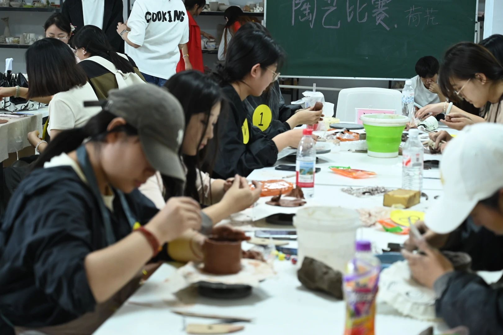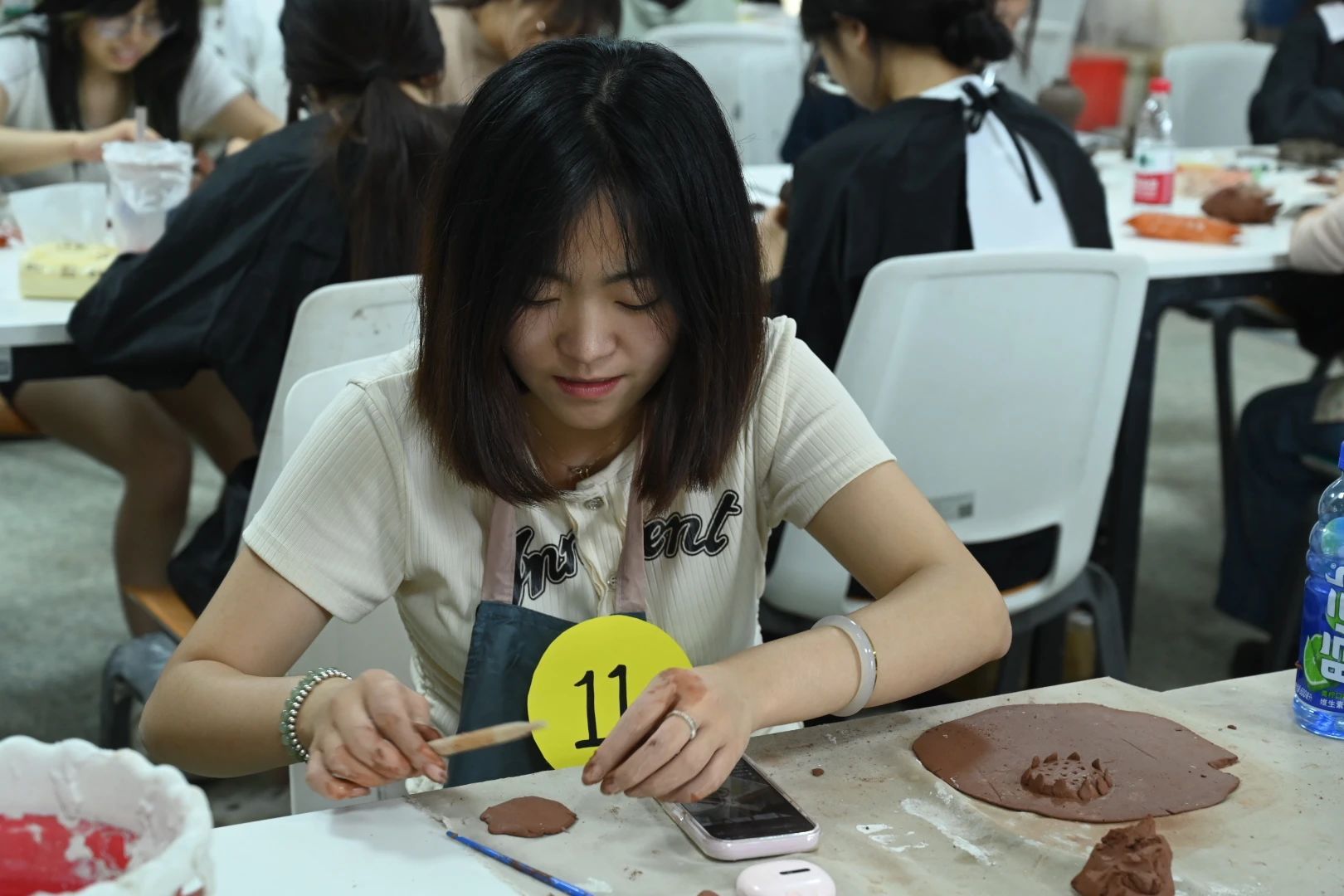 5月28日决赛当天,来自九个学院的参赛选手,他们全身心投入创作。志愿者们分工明确、有条不紊,以热情的服务做好场地指引工作,为活动的顺利开展提供了坚实保障。陶艺赛场上,选手们发挥想象塑造出形态各异的作品;剪纸赛场上,刻刀飞舞间一幅幅精美作品成型;书法赛场上,选手们挥毫泼墨,尽显对传统文化的热爱。