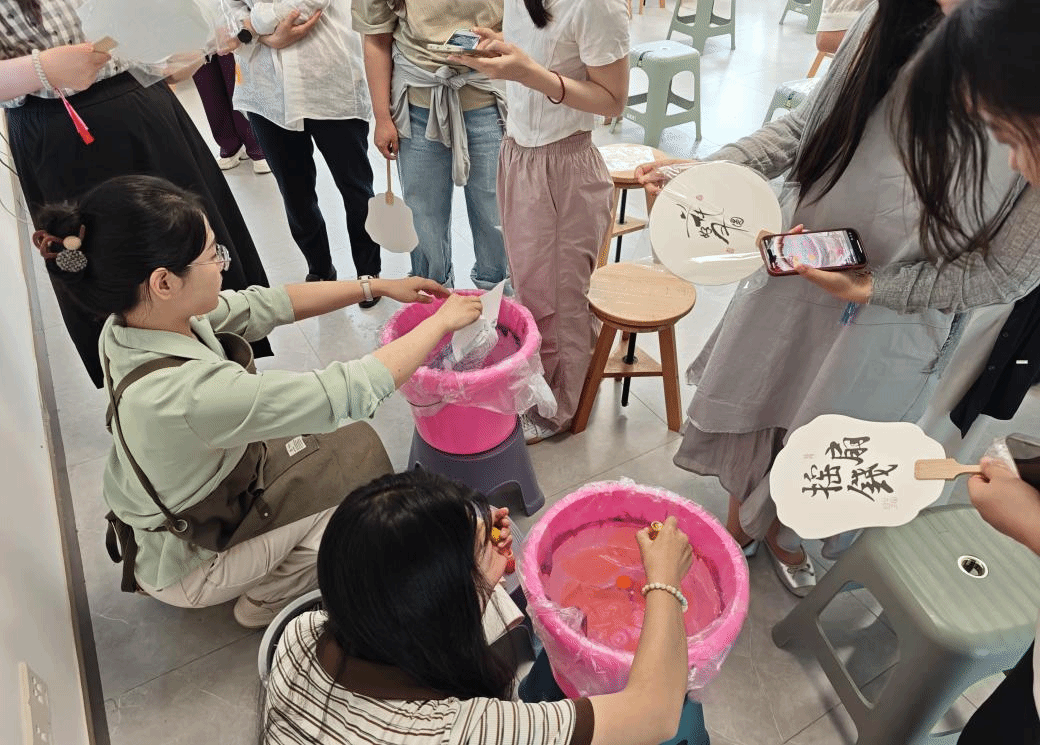 活动现场热闹非凡。我院教师党员麻梦琳、魏明雪将非遗课堂从校园搬到了群众当中。流光溢彩的非遗漆扇、承载着吉祥祝福之意的手编五彩绳,吸引了众多市民争相体验。亲手编个彩绳、染个漆扇,大家在轻松有趣的DIY中,感受到了老手艺的新玩法,给传统节日添了满满的“潮”味和文化气息!