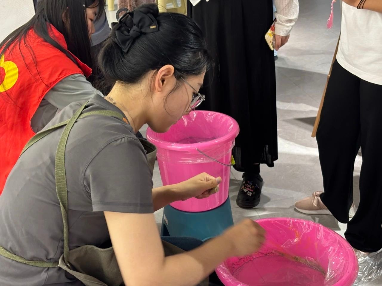 活动过程中,志愿者们坚守岗位,明确任务,协助文化馆馆员有条不紊地开展预约签到、扫码登记、核销信息、参观交流、技艺体验等工作,全力确保活动顺利进行。