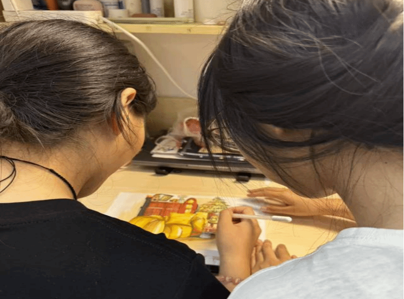 帮扶小组进行手绘作业辅导