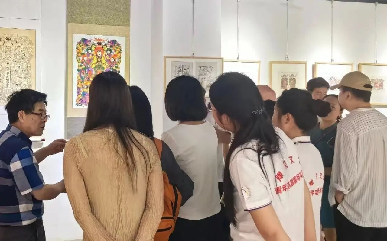 上午,在博物馆的创建者、开封木版年画代表性传承人任鹤林大师的引导下,实践团成员详细了解了开封木版年画悠久的历史渊源、独特的艺术风格及丰富的文化内涵。队员们驻足于一幅幅色彩浓烈、形象生动的年画前,聆听大师解读其背后的民俗故事与吉祥寓意,深切感受到这项古老技艺承载的厚重历史记忆与浓郁乡土情怀,领悟到大师数十年如一日的执着坚守与匠心精神。