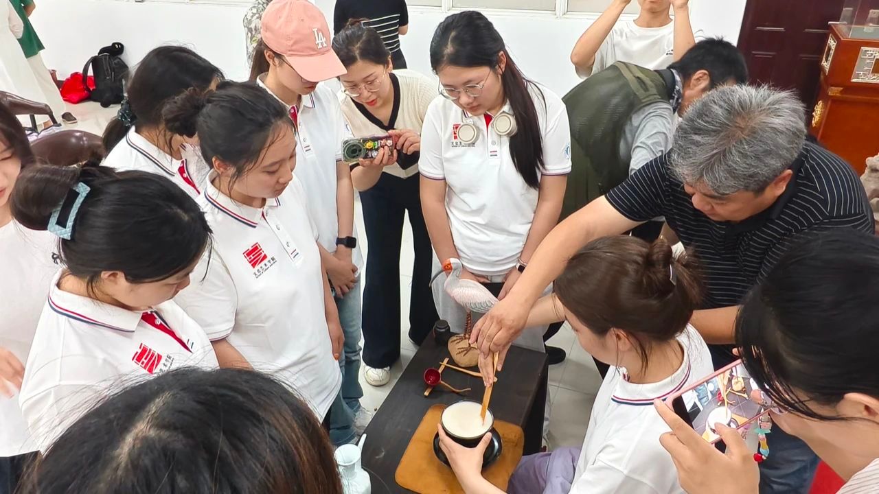 随后,实践团对王东进行了专题采访。他谈到,宋代点茶不仅是技艺,更是一种生活美学的传承。“非遗的生命力在于与时俱进,我们通过文创开发、技能研学让更多年轻人触摸到传统文化的温度。”王东表示,期待与我院合作探索非遗创新路径。
