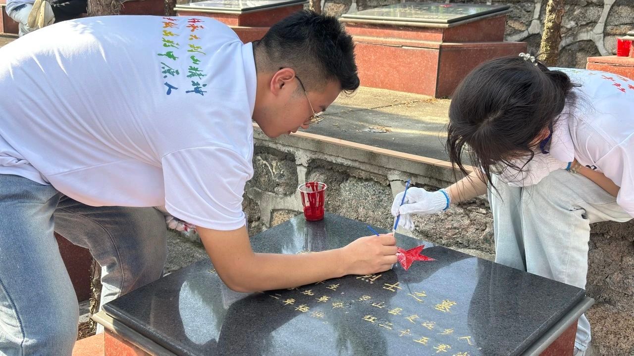 行程中,潘建喜更深刻地见证了红色基因在当代的鲜活传承。在田铺大塝的“老家寒舍”,店主一家三代接力奉献——爷爷辈是老红军,儿子如今在空军服役,无声地印证着跨越百年的忠诚。在何家冲烈士陵园,潘建喜蹲在冰凉的烈士墓碑前,屏息凝神,蘸着红漆一笔一划描摹被岁月侵蚀的名字。当指尖颤抖地划过那个与他同姓的“潘”字时,跨越生死的酸楚与肩头沉甸甸的责任感油然而生。亲身体验烧火制作“长征饭”,灶膛的浓烟熏得他泪水与汗水交织;重走五公里崎岖长征路,沉重的喘息与浸透衣背的汗水,让他对“长征”二字有了血肉相连的切肤体会。在巨大的古银杏树下,聆听何大妈的后人何桂英讲述何大妈在白色恐怖中毅然用枪托刺向自己的右眼,无畏救助红军的壮举,那份超越常人的勇气与朴素信念,深深扎根于他的心底。