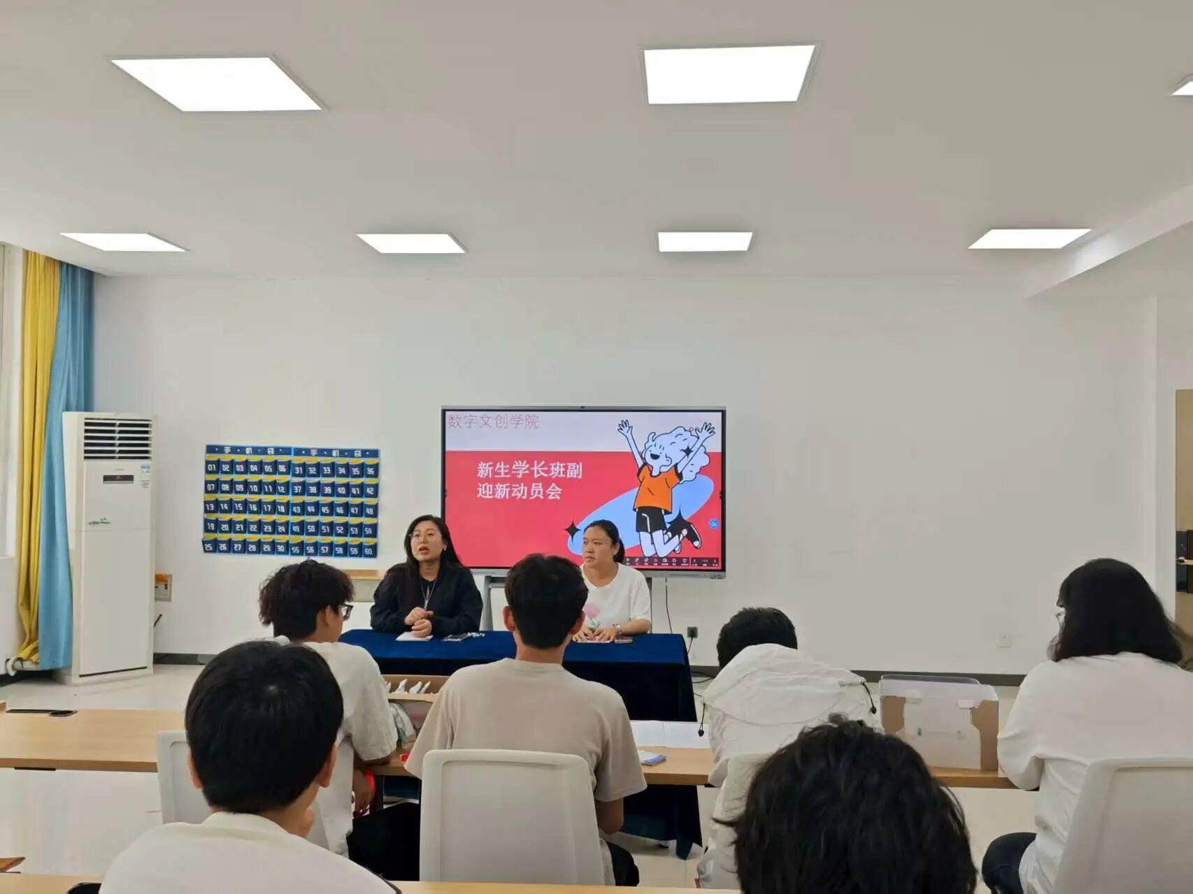 为保障2025级新生入学工作有序开展,9月7日下午,数字文创学院于7号教学楼102教室组织召开新生学长、班副动员会。会议由团总支书记冯思源主讲,学院2025级新生学长、班副全员参加。