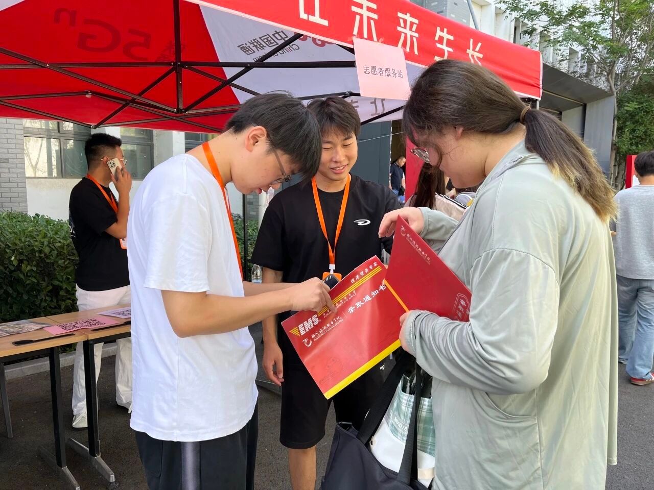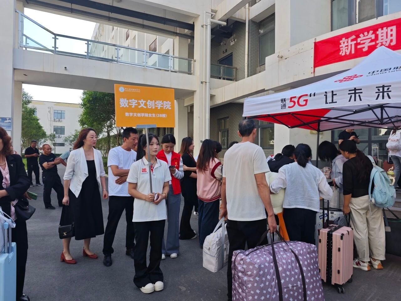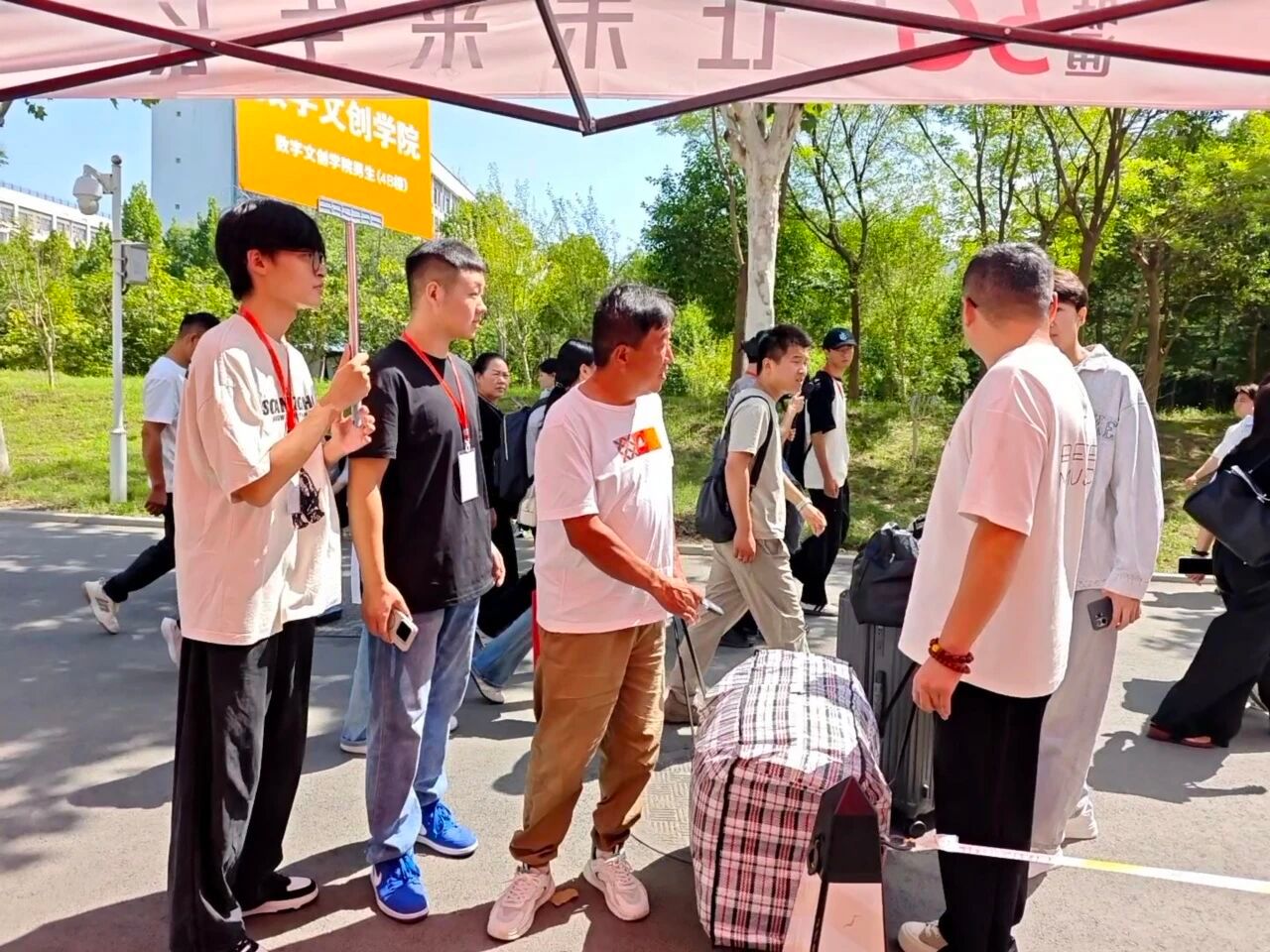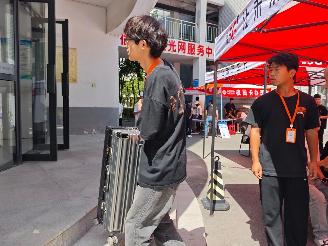 志愿者们穿梭校园, 热情引导、帮搬行李、登记信息,从校门到宿舍贴心相伴, 让“初来乍到”变为“宾至如归”。