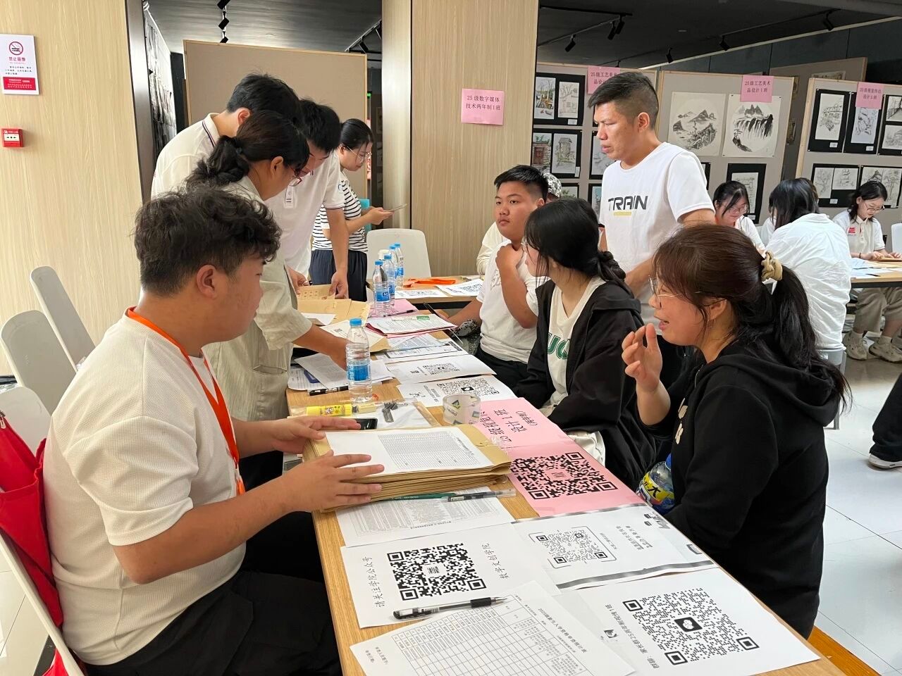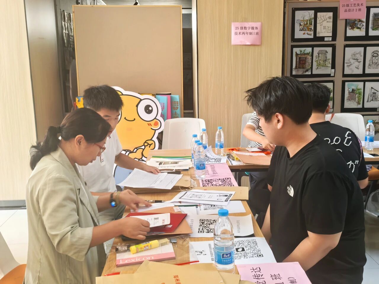 数字文创学院报到现场, 为萌新们点亮“数文”专属身份。助力萌新融入数创大家庭, 开启元气满满新旅程。