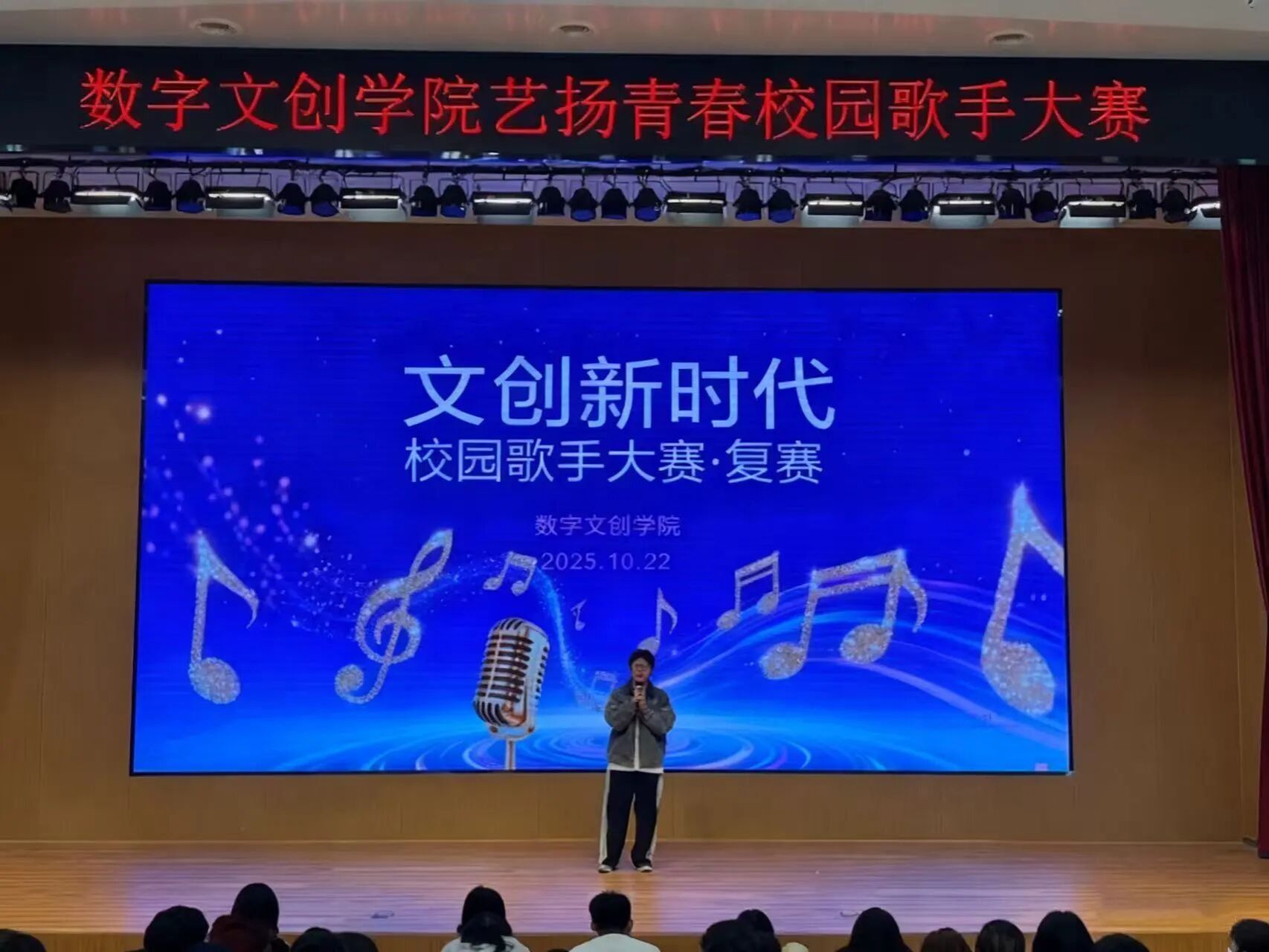 10月24日下午,数字文创学院“文创新声代” 歌手大赛在热烈氛围中圆满结束。大赛以 “友谊第一,比赛第二” 为核心原则,不仅为同学们搭建了展现音乐才华的舞台,更推动了校园歌唱文化的发展,让青春活力在歌声中充分释放。