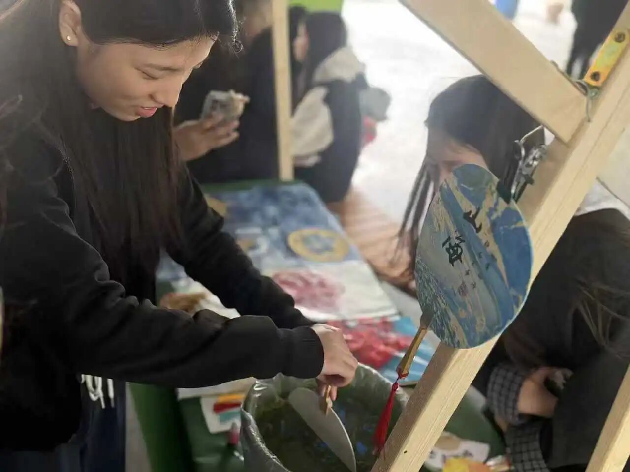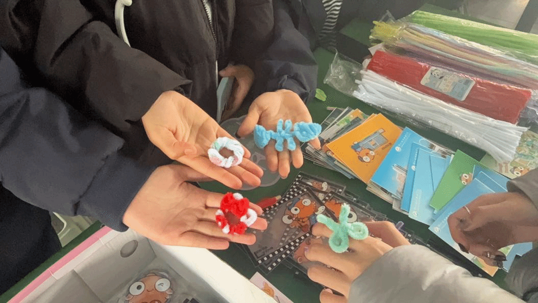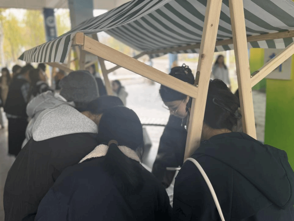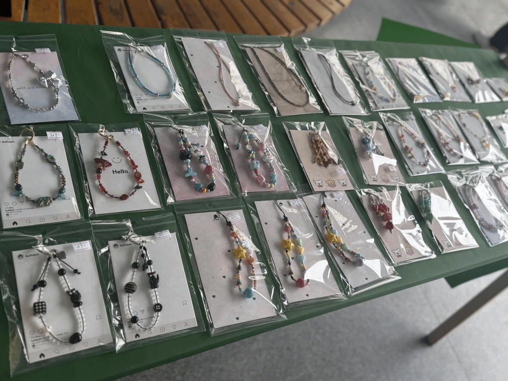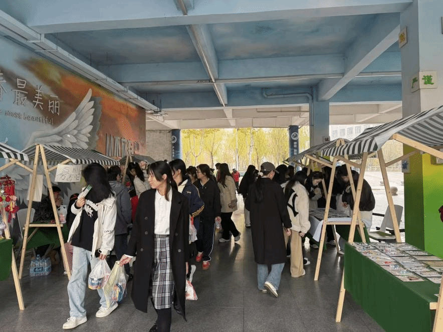 市集现场人头攒动、热闹非凡,各类摊位错落有致,满溢着青春气息与创意氛围。手工文创区尤为亮眼,这里陈列的手工编织手链、复古风耳饰、手工漆扇等精美好物,均是数字文创学院教师带队指导、学生结合专业知识亲手制作的成果。同学们将课堂所学的设计理念、工艺技巧融入手工创作,带着这些凝聚创意与心血的作品参与市集贩卖,在实践中完成从专业学习到职业体验的初步历练。这一过程不仅锤炼了实操能力、积累了市场经验,更让专业价值得到直观体现,精致的文创产品赢得了全院师生的一致青睐与称赞。