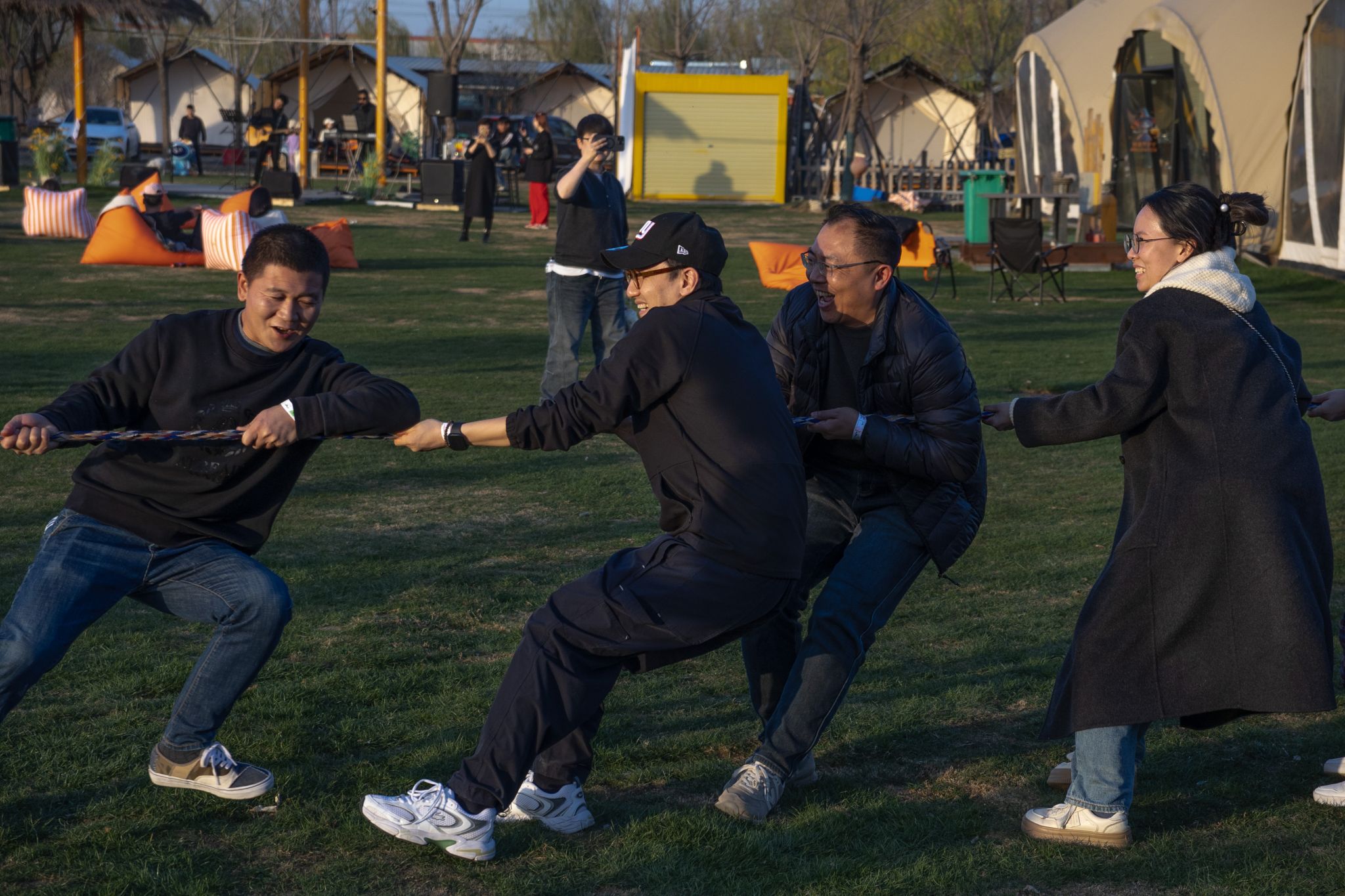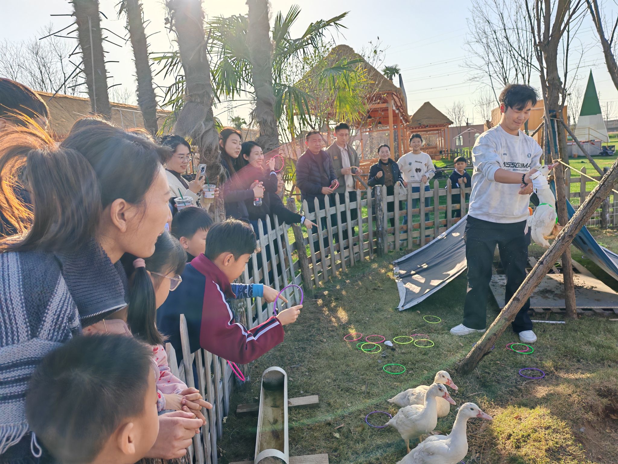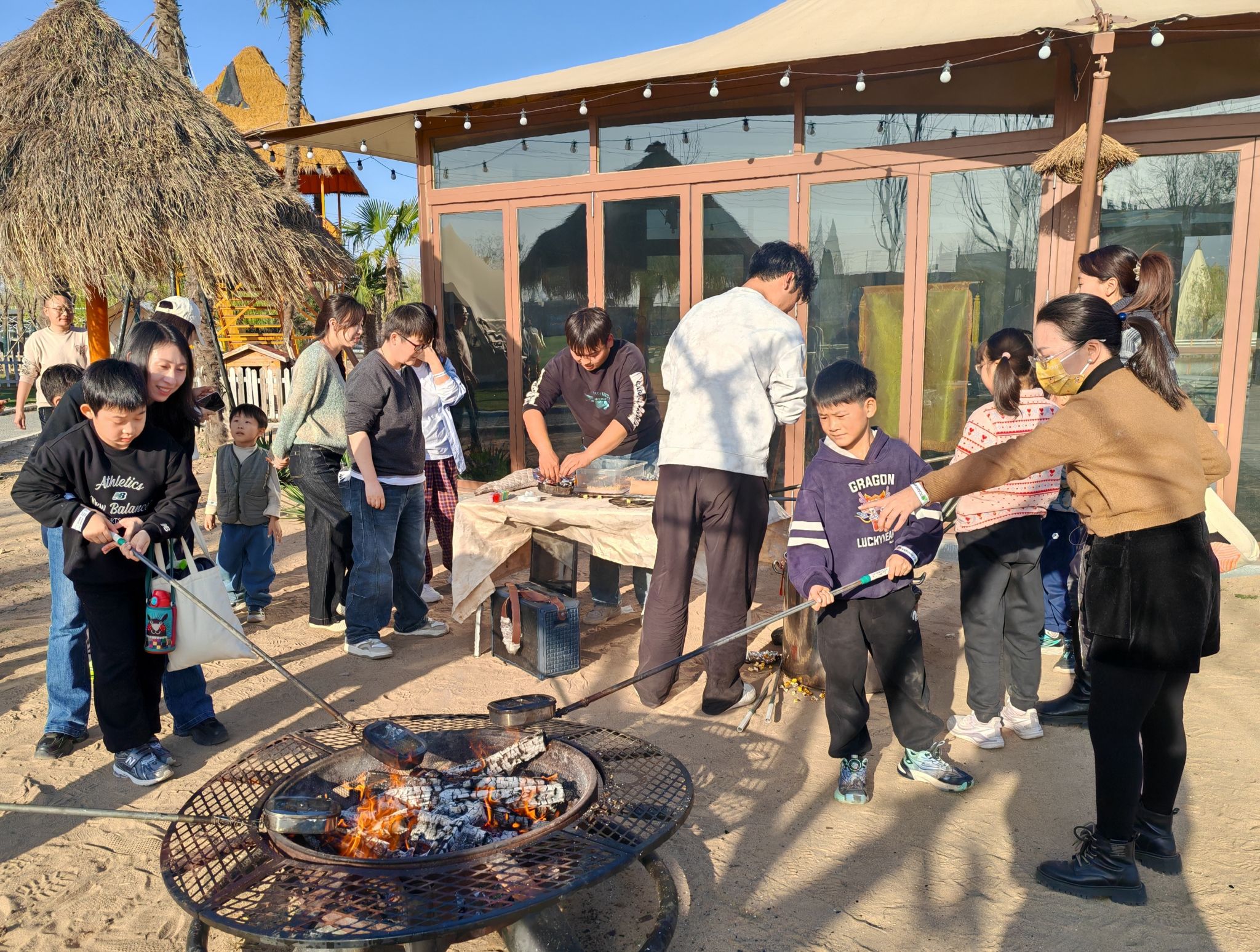 深秋时节,天朗气清,阳光和煦。老师们暂时告别繁忙的工作,投入大自然的怀抱,在欢声笑语中开启了轻松愉快的团建时光。活动内容丰富多彩,充满趣味:在考验技巧与运气的“套圈”游戏中,大家全神贯注,喝彩声不断;在传统美食“爆米花”制作体验环节,香气四溢,勾起了许多美好的童年回忆;在紧张刺激的“攻防射箭”对抗中,老师们分组协作,策略与默契并存;在力量与意志较量的“拔河”比赛中,各方齐心协力,口号响亮,将现场气氛推向高潮;随后开展的“寻宝”活动,更是激发了大家的探索热情,老师们穿梭于营地之间,仔细搜寻,乐趣无穷。活动尾声,篝火舞会和烟花表演为今日的团建画上了圆满句号。